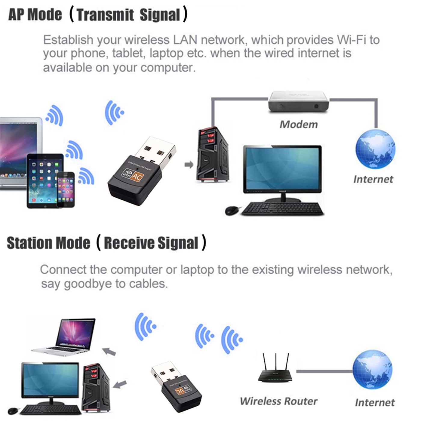 Q: Can I use the USB Wifi Adapter with my laptop or desktop?A: Yes, this USB Wifi Adapter is designed to work with both desktop and laptop computers, allowing you to upgrade your device to support the latest dual band routers for faster speeds and extended range.