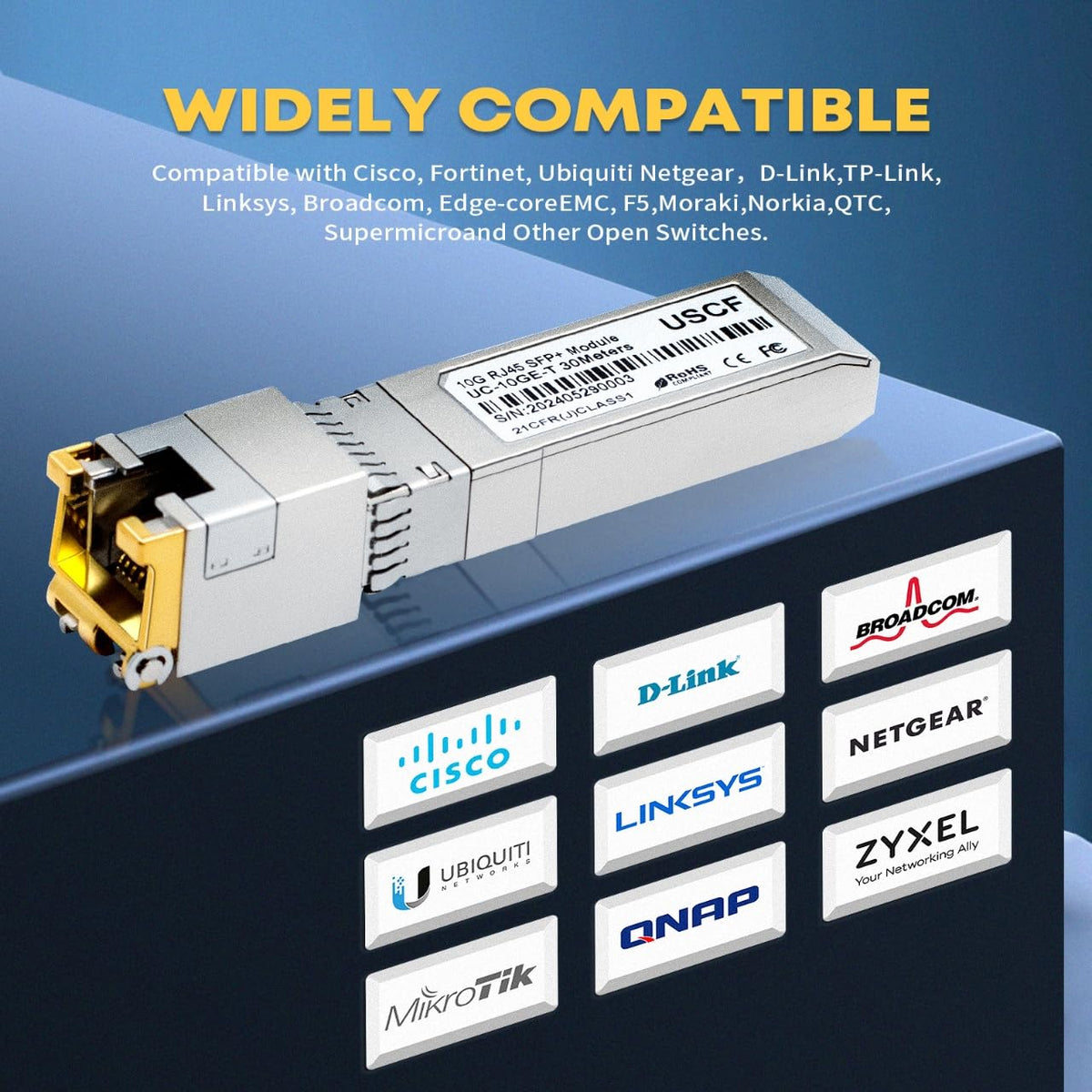 Uscf 10G Sfp To Rj45 10Gb Ethernet Adapter, Uacc Cm Rj45 Mg Single Mode Sfp Module Cat.6A/7, Up To 30 Meters, For Ubiquiti,Unifi