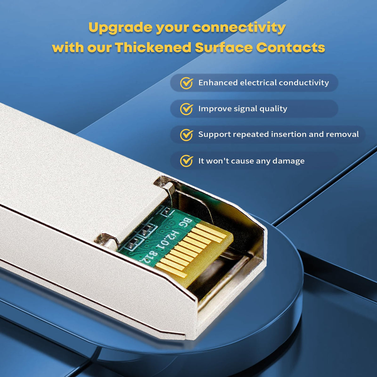 Q: Is this transceiver compatible with other networking equipment brands?A: Yes, this transceiver is compatible with a wide range of brands including Cisco, Ubiquiti, Meraki, TP-Link, Mikrotik, and Netgear, making it a versatile choice for upgrading your network.