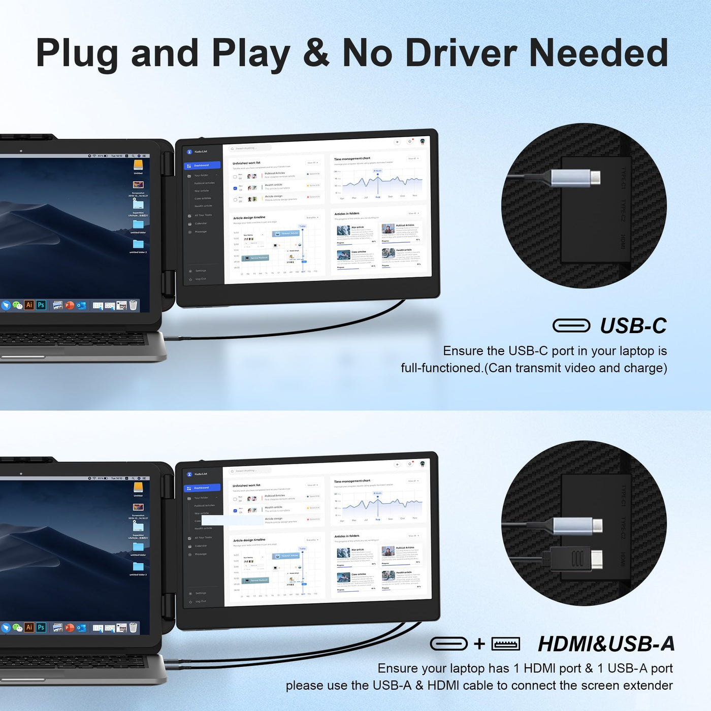 Venraty Laptop Screen Extender, 12'' Dual Laptop Monitor Extender, Hdmi/Usb-C Plug-Play Portable Monitor Display For Laptop, Compatible With Multiple Systems(Mac/Wins/Android/Switch/Dex)