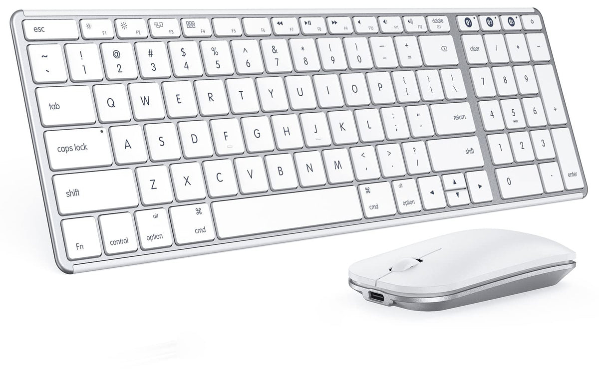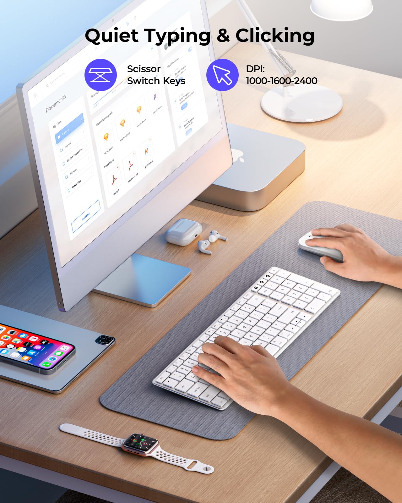 Wireless Bluetooth Keyboard And Mouse For Mac, Multi Device Rechargeable Keyboard And Mouse Stainless Steel Full Size, Compatible With Macbook Pro/Air, Ipad, Imac White Silver