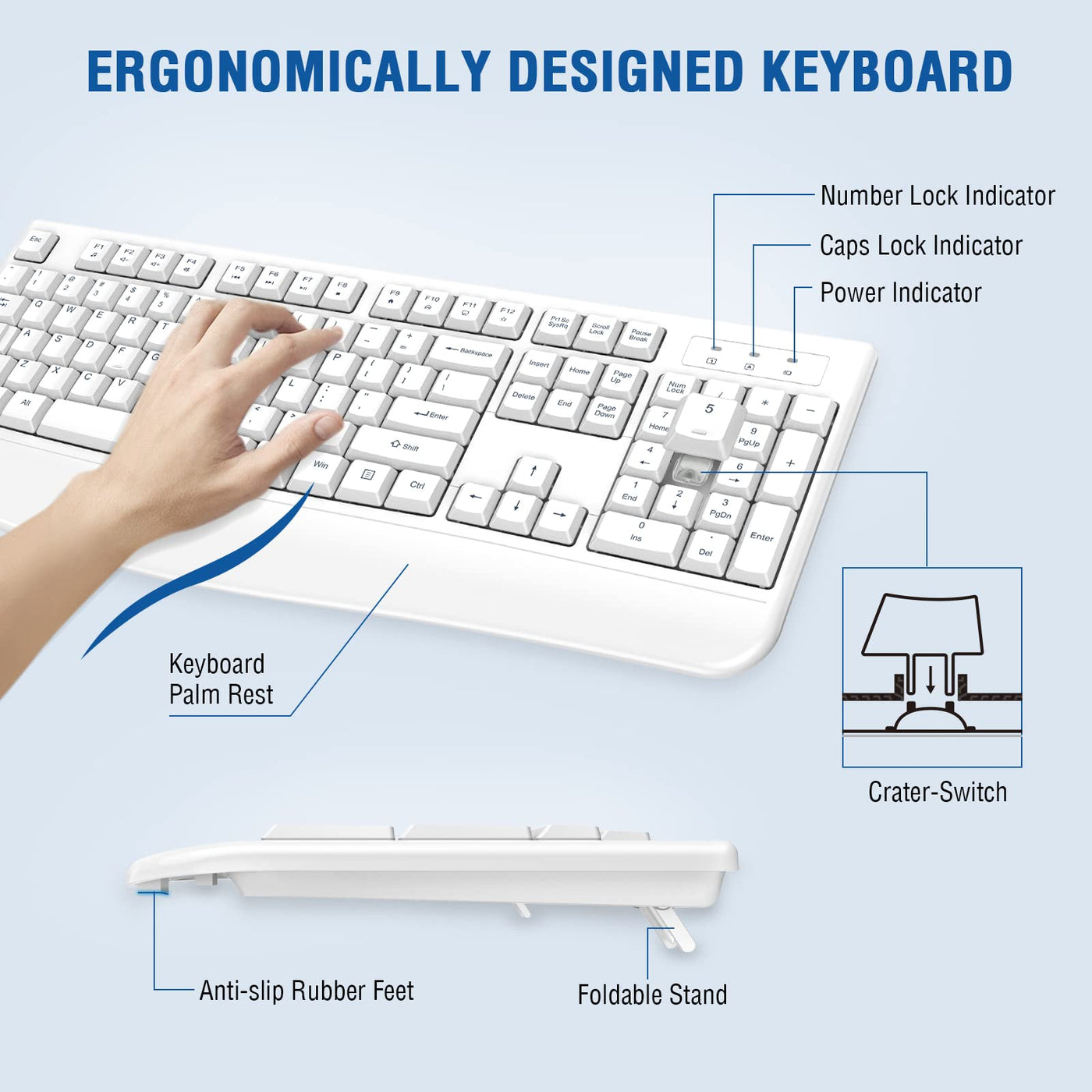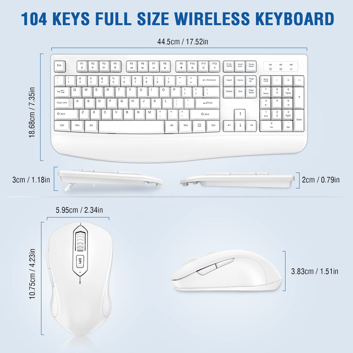 Wireless Keyboard And Mouse Combo, Edjo Full Sized Ergonomic Computer Keyboard With Wrist Rest And 3 Level Dpi Adjustable Wirele