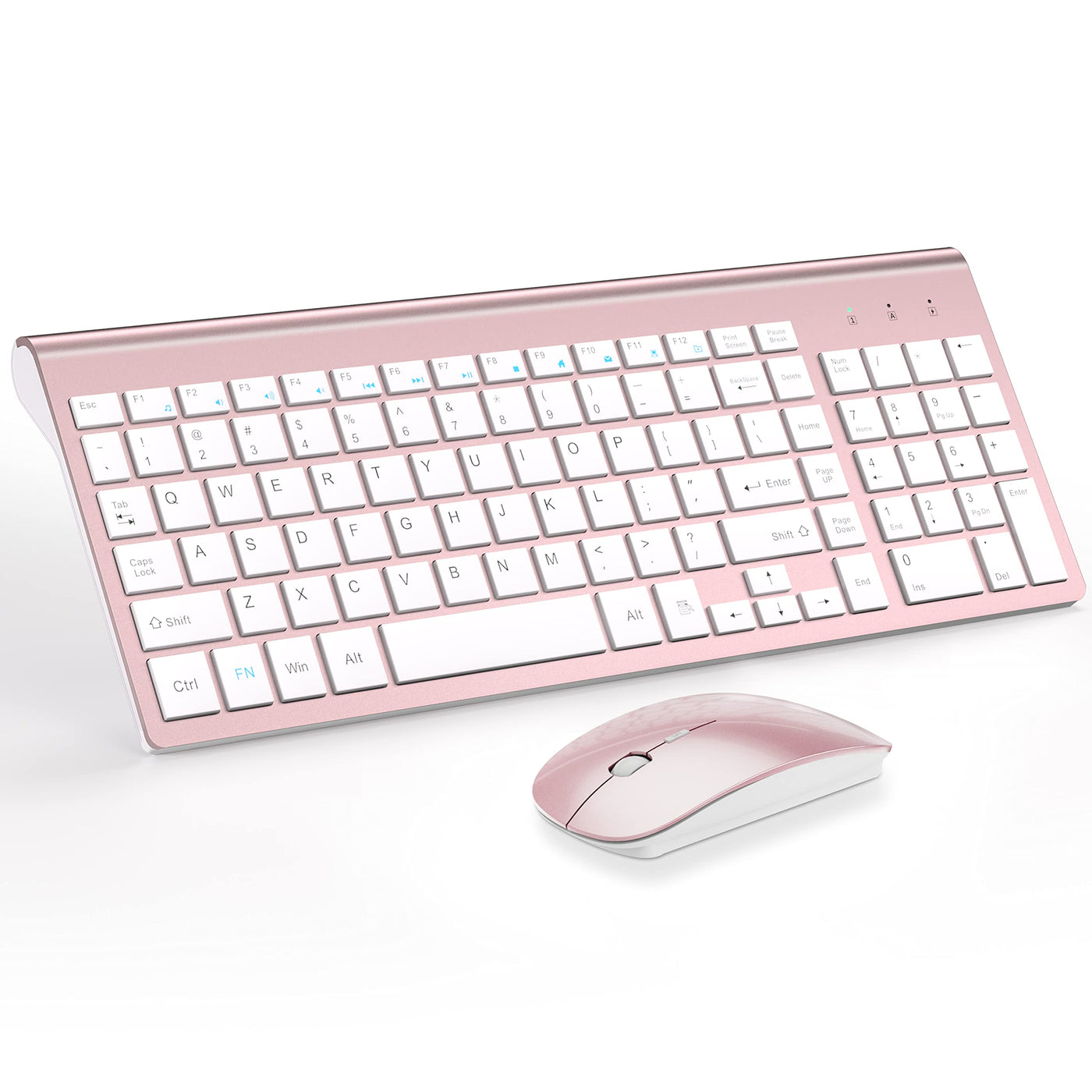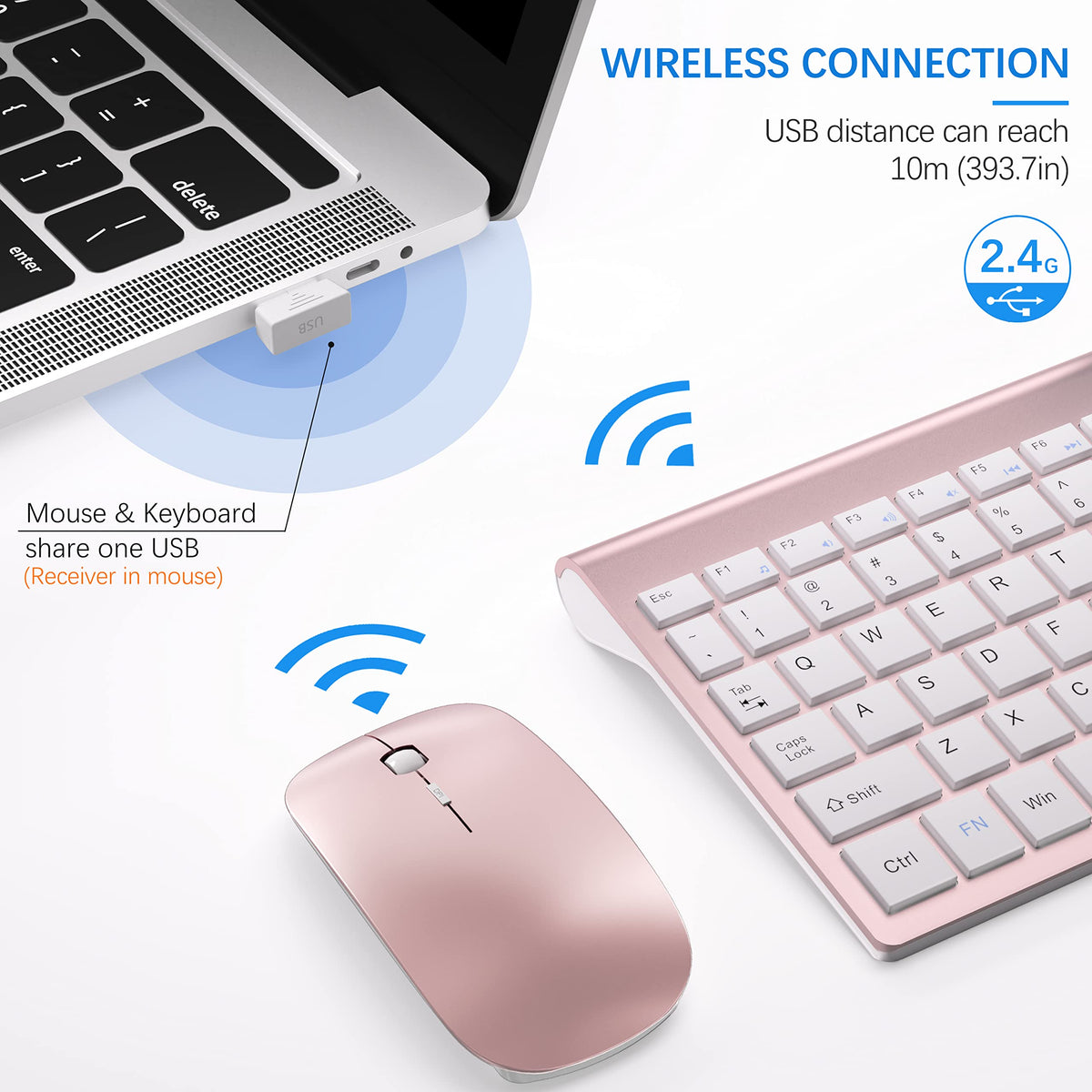 Wireless Keyboard And Mouse Ultra Slim Combo, Topmate 2.4G Silent Compact Usb 2400Dpi Mouse And Scissor Switch Keyboard Set With Cover, 2 Aa & 2 Aaa Batteries,For Pc/Laptop/Windows/Mac Rose Gold White