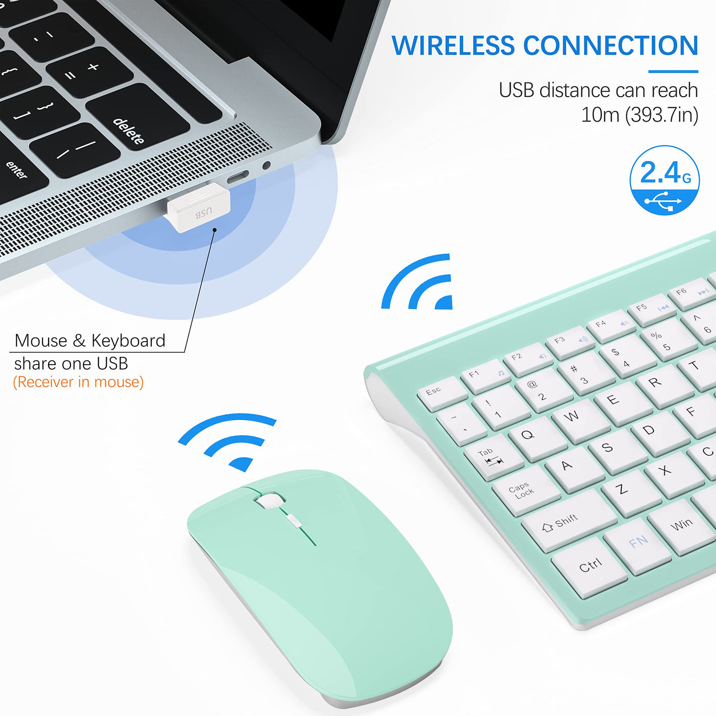 Wireless Keyboard And Mouse Ultra Slim Combo, Topmate 2.4G Silent Compact Usb 2400Dpi Mouse And Scissor Switch Keyboard Set With Cover, 2 Aa And 2 Aaa Batteries, For Pc/Laptop/Windows/Mac Mint Green