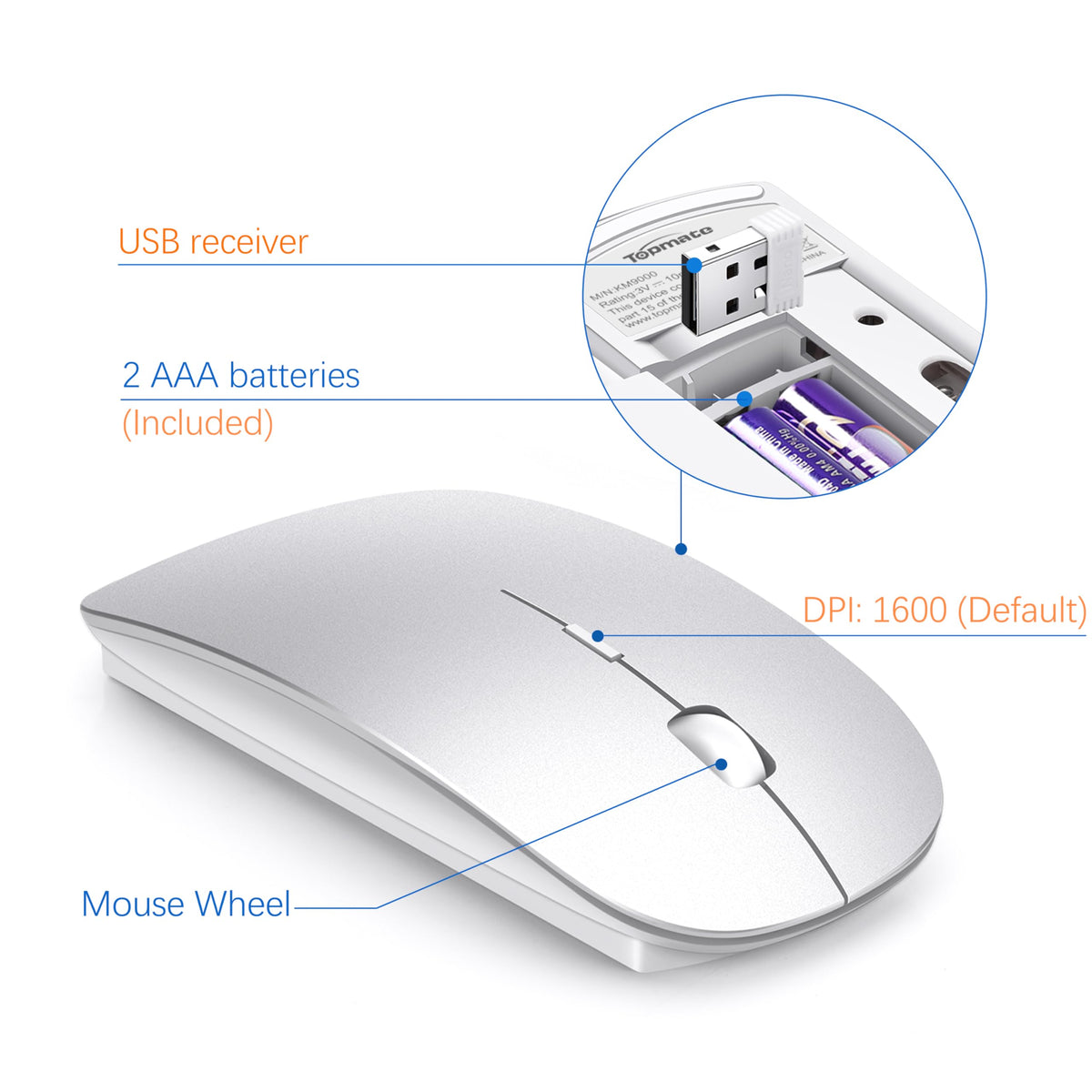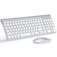 Wireless Keyboard And Mouse Ultra Slim Combo, Topmate 2.4G Silent Compact Usb 2400Dpi Mouse And Scissor Switch Keyboard Set With Cover, 2 Aa And 2 Aaa Batteries, For Pc/Laptop/Windows/Mac Silver White