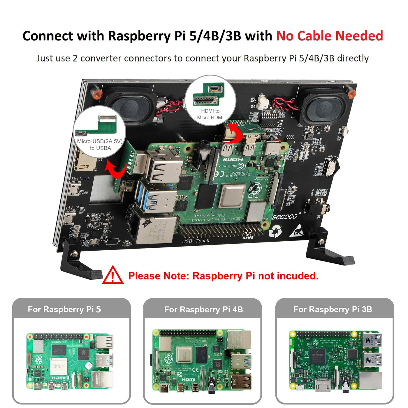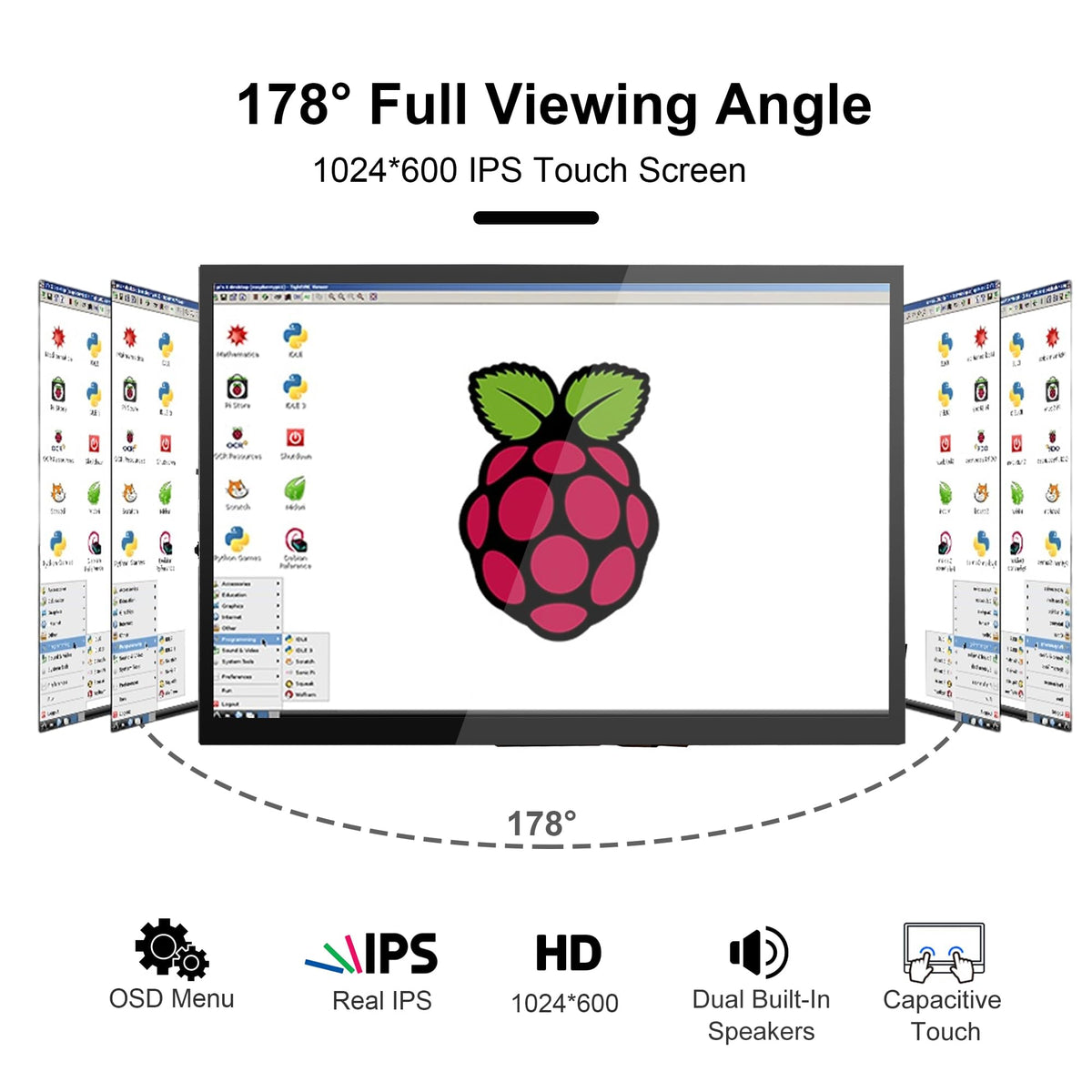 Wisecoco No-Cable-Needed Drive-Free Dual-Speaker 500Cd/M With Osd 7 Inch Rpi Touchscreen Display Ips 1024 600 Hd Hdmi Lcd Touch Screen Monitor For Raspberry Pi 4B 3B+ Pi 4 3 2 Model B Windows