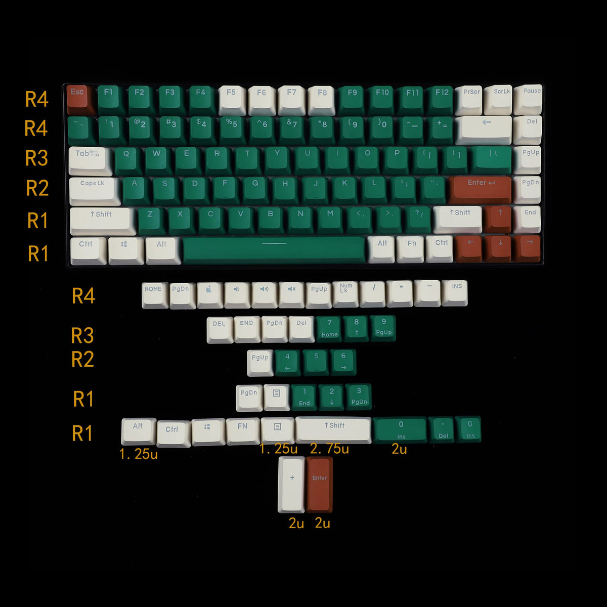 Package Information Only Keycaps In Package,No Mechanicalkeyboard Included 108 Option: 1X 108 Oem Keycap Keyset (A Extra Win Presented) 122 Option: 1X 108 Oem Keycap Keyset + 14 Extra Keys Which Can Use For 68 84 96 Layout Details This Link Is Only The Keycaps,No Keyboard Included.The Keycap Loading Board Is Only To Take Photo,Not Included In The Sold Package.We Will Pack The Keycaps In Our Own Carton. This Keycap Set Is Oem Profile,Higher Than Cherry Profile. The Keycap Is Made Of Pbt Material,It'S Double Shot And Dyed Which Can Let The Shine Through. The Thickness Is Around 1.25Mm Compatiability 108 Options: It Can Be Used For Most Standard 61 87 104 108 Ansi Mx Switches Mechanical Keyboard Whose Bottom Row Is 6.25U And 7X1.25U,Namely Space Is11.7Cm. 122 Options: It Can Be Used For Most Standard 61 87 104 108 Ansi Mx Switches Mechanical Keyboard Whose Bottom Row Is 6.25U And 7X1.25U,Namely Space Is 11.7Cm. It Can Be Used For 68 84 Layout It Can Be Used For 96 Layout,You Just Need To Use The Media Keys To Replace R4 End. Incompatiabilityif The Spacebar Is 6U 6.5U Instead Of 6.25U,It Can'T Be Compatible.It'S Not Compatible With Cosair Logitech.It'S Not Compatible Some Old Cherry Keyboard Whose Spacebar Capslock Back Hole Is Different,Such As 1800After Service If Some Keys Missing Or Broken On The Way,Just Leave Us Message,We Will Send You Missing Or Broken Ones Soon.Don'T Worry About It And Don'T Leave Feedback Immediately.