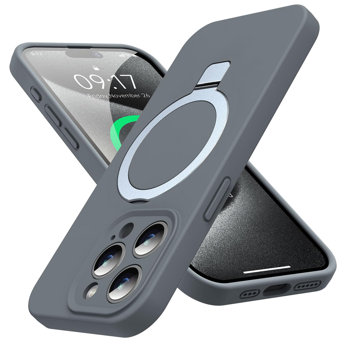 Kmambag Mag Ring Designed For Iphone 15 Pro Case, Liquid Silicone [Moisturizing Factor] Extreme Soft Slim Phone Case With Stand