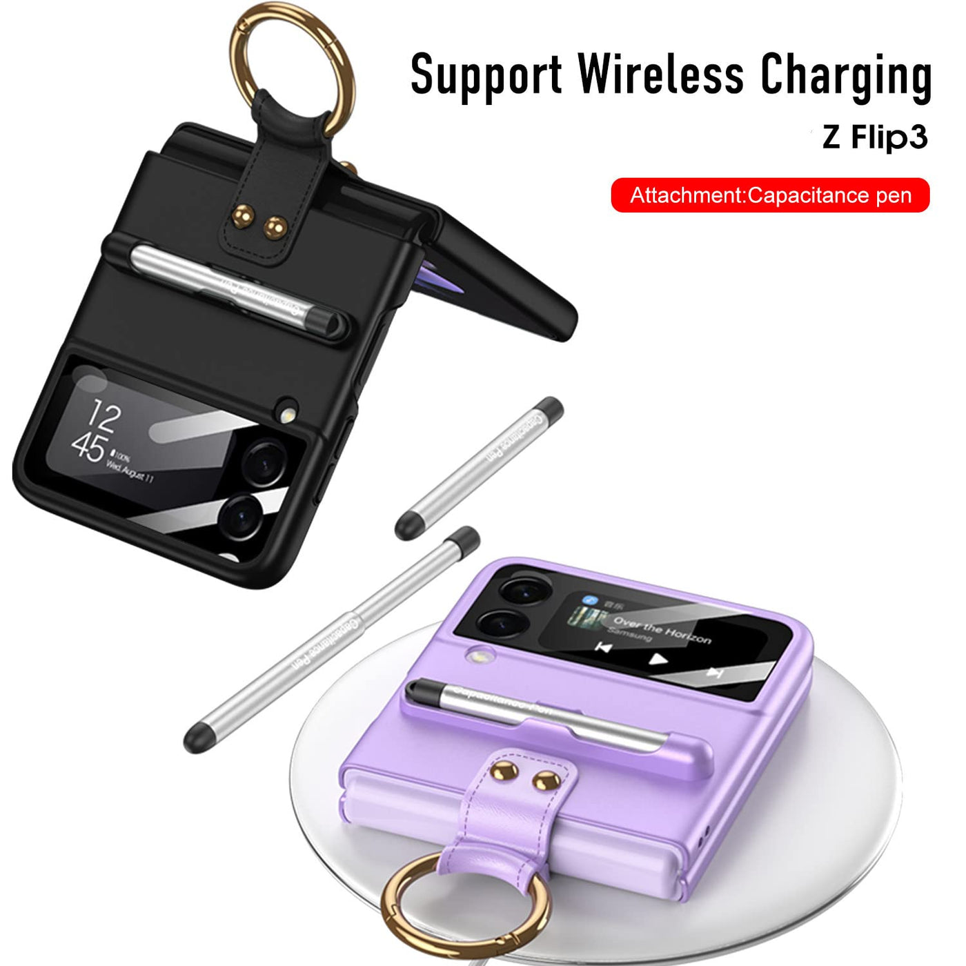 Liulanz For Samsung Galaxy Z Flip 3 Case With Pen And Ring,Ultra Thin Matte Leather Anti Drop Phone Cover With Camera Screen Pro