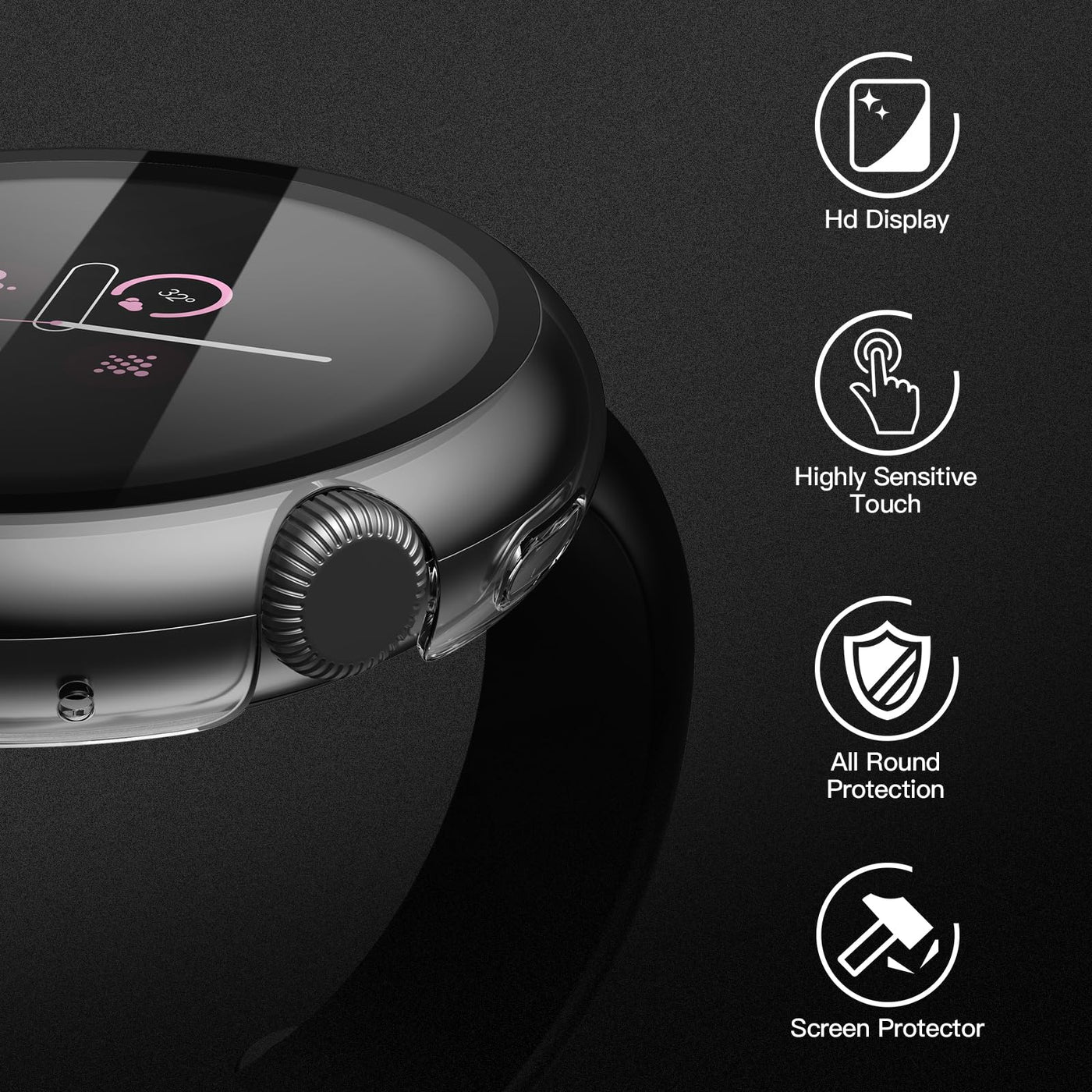 High-Quality Material: The Cover Is Made Of Durable And Hard Pc Material With Built-In Hd Clear Tempered Glass Protector, Making Your Google Pixel Watch Exceptionally Smooth And Improving The Aesthetics Feeling Of Your Pixel Watch For Daily Use.Anti-Fall & Scratch Resistant: This Protective Case With Tempered Glass Screen Protector Provides Advanced Protection For Your Google Watch 3 By Fully Covering The Screen. It Effectively Shields Against Scratches, Bumps And Other Accidental Drops.High Sensitive Touch: This Case For Google Pixel Watch 3 41Mm Is Made Of Hard Pc And Durable 9H Tempered Glass, Smooth To The Touch And Not Affect The Touch Sensitivity. It Maintains The Original Touch Feel Of The Screen.Easy-To-Install? This Case Features A Snap-On Design For Easy Installation And Removal, Enhancing Your Overall User Experience, Effortlessly Without Bubbles And Perfectly Fitted For Your Pixel Watch 3.Products Included? 2 Transparent Cases With Screen Protector For Your 41Mm Google Pixel Watch 3 In One Package. If You Encounter Any Problems During Receiving, We Will Provide You With Effective Assistance. Choose Us For High Quality Products And Excellent Service.