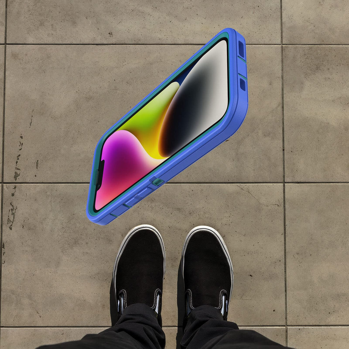 Otterbox Iphone 14 Plus Defender Series Case Rain Check (Blue), Rugged & Durable, With Port Protection, Includes Holster Clip