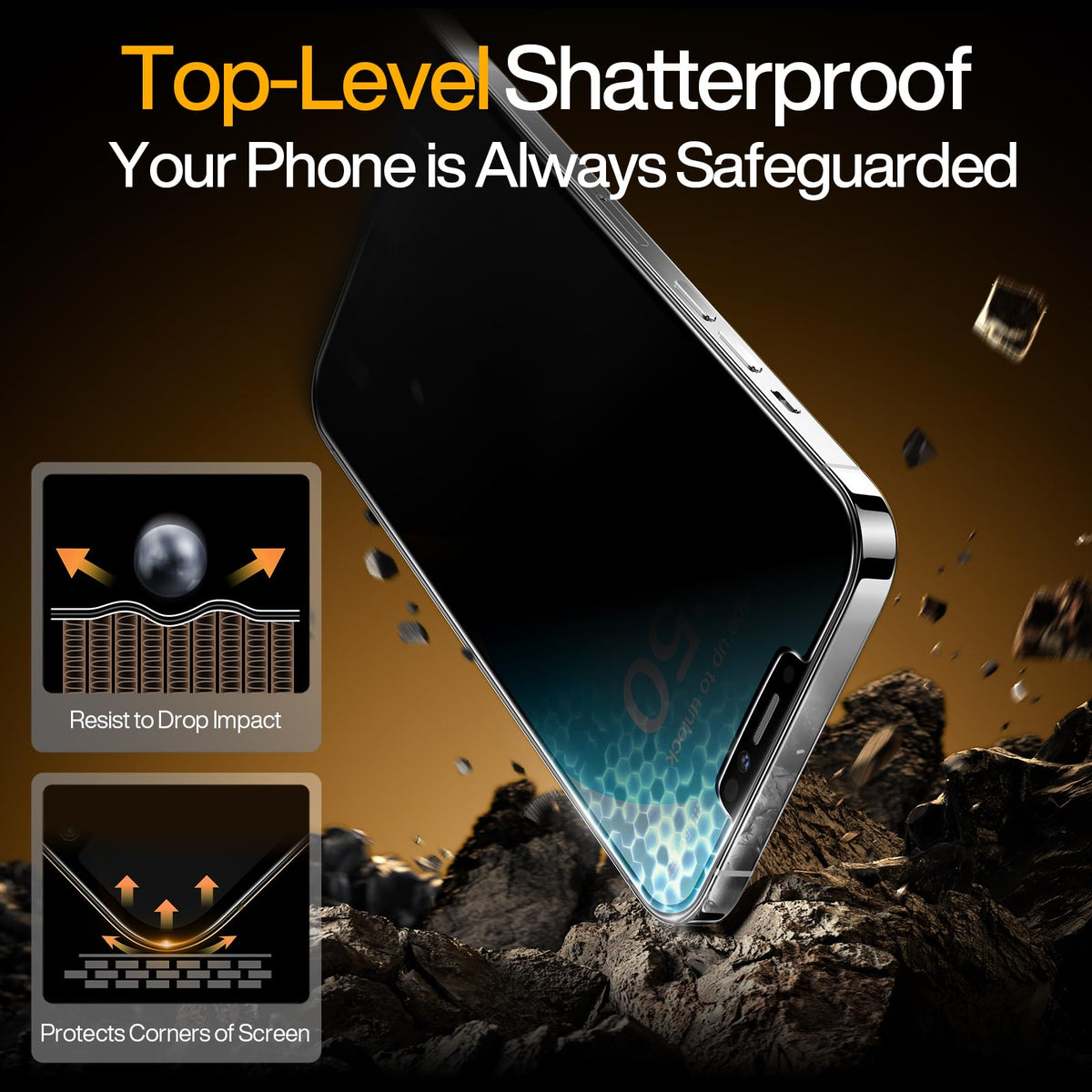 Q: How does the SMARTDEVIL privacy screen protector perform against scratches and impacts?A: Crafted from unbreakable 9H+ tempered glass, the SMARTDEVIL screen protector provides military-grade shatterproof protection, having undergone over 3000 drop tests without showing scratches or cracks.
