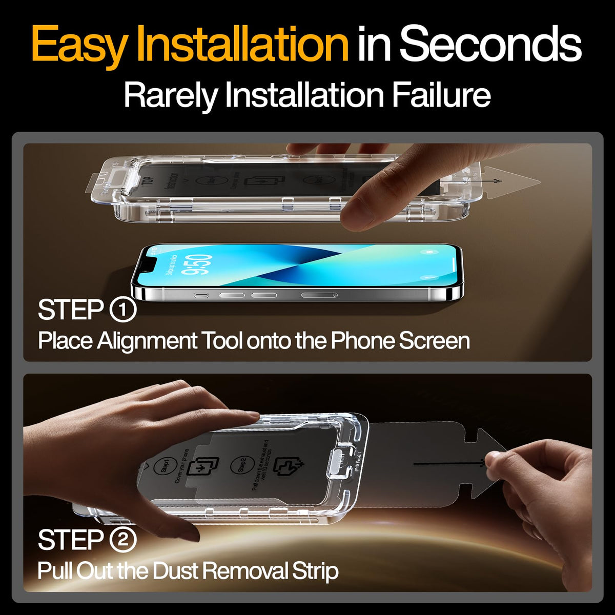 Q: How easy is it to install the SMARTDEVIL privacy screen protector?A: Installation is designed to be simple and quick, utilizing an auto dust-elimination tool that absorbs dust and ensures a bubble-free application in just a few seconds.