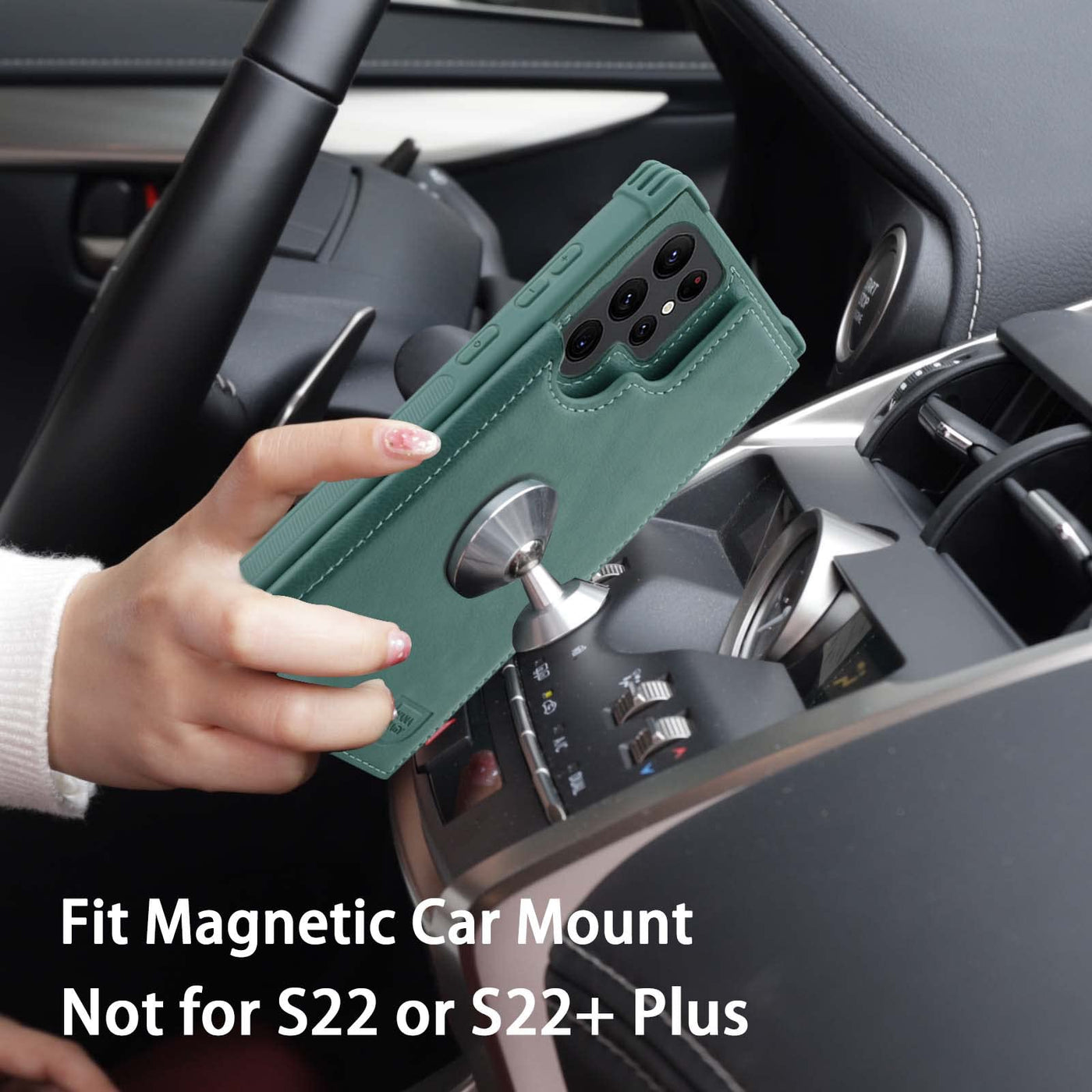 Vanavagy Compatible For Galaxy S22 Ultra Wallet Case For Women And Men, Faux Leather Flip Folio Phone Cover Fits Magnetic Car Mo