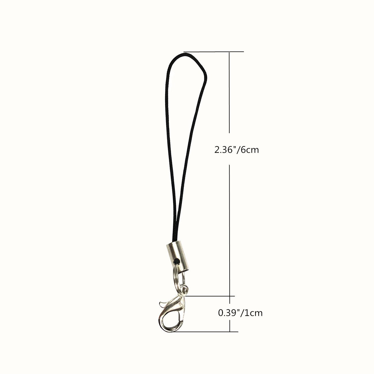15 Cell Phone Strap Black/Silver Tone Split Ring With Hooks