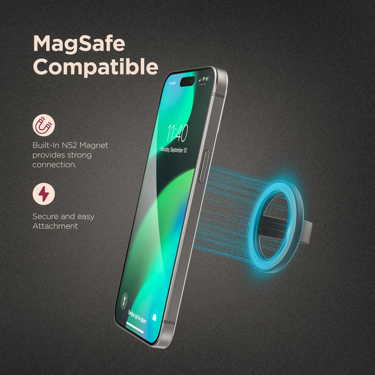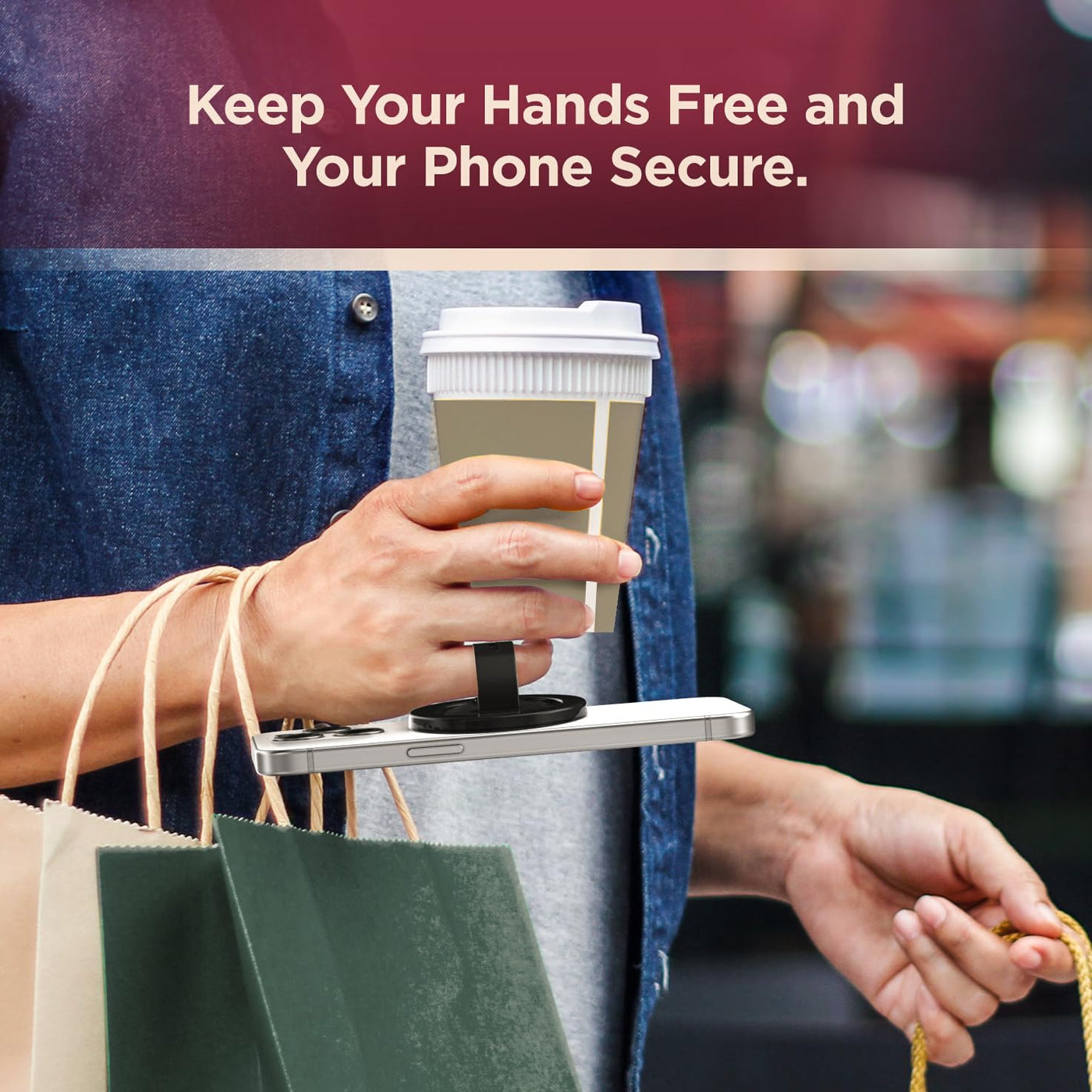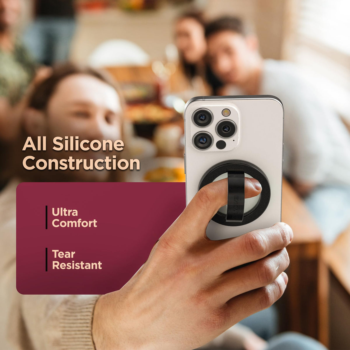 Encased Magnetic Phone Grip Holder (Compatible With Magsafe) Thin Silicone Finger Loop Ring For Iphone (Black)