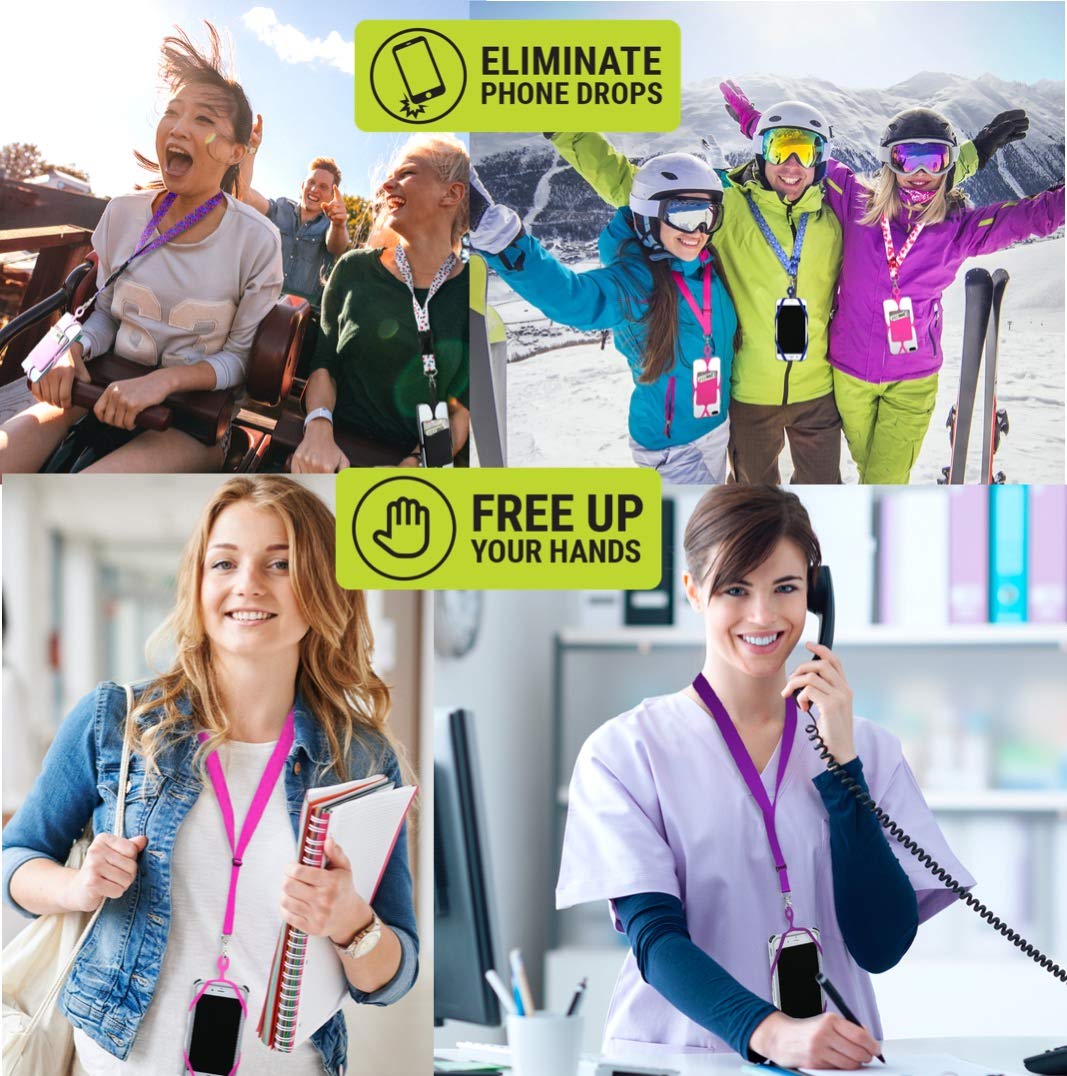 Universal Smartphone Lanyard Strap keeps your phone secure and accessible at all times. The perfect solution for sports fans, concert goers, teachers, students, hikers, seniors, travelers or anyone who wants easy access to their cell phone. Satin polyester neck strap adjusts from 24 to 46 inches (12 to 23 inches drop length) is comfortable to wear while extra strong lightweight silicone phone holder provides a secure carrying solution to prevent drops. Large SWIVEL CLIP can hold keys or name badge. CONVENIENT CARD SLOT AND ID HOLDER holds Credit Card, License, Access Card or Cash. COMPATIBLE WITH MOST PHONES, with or without a phone case, including iPhone 11, 11 Pro, 11 Pro Max, X, Xs, Xs Max, Xr, 8 Plus, 8, 7 Plus, 7,6 Plus, 6, Galaxy S10, S10e, S10 Plus (S10+), S9, S9 Plus, S8, S8 Plus, Galaxy Note 10, 10 Plus (10+), 9 and 8. The phone holder may partially block the rear camera lenses on some phones. It may be necessary to adjust the holder to use the camera.