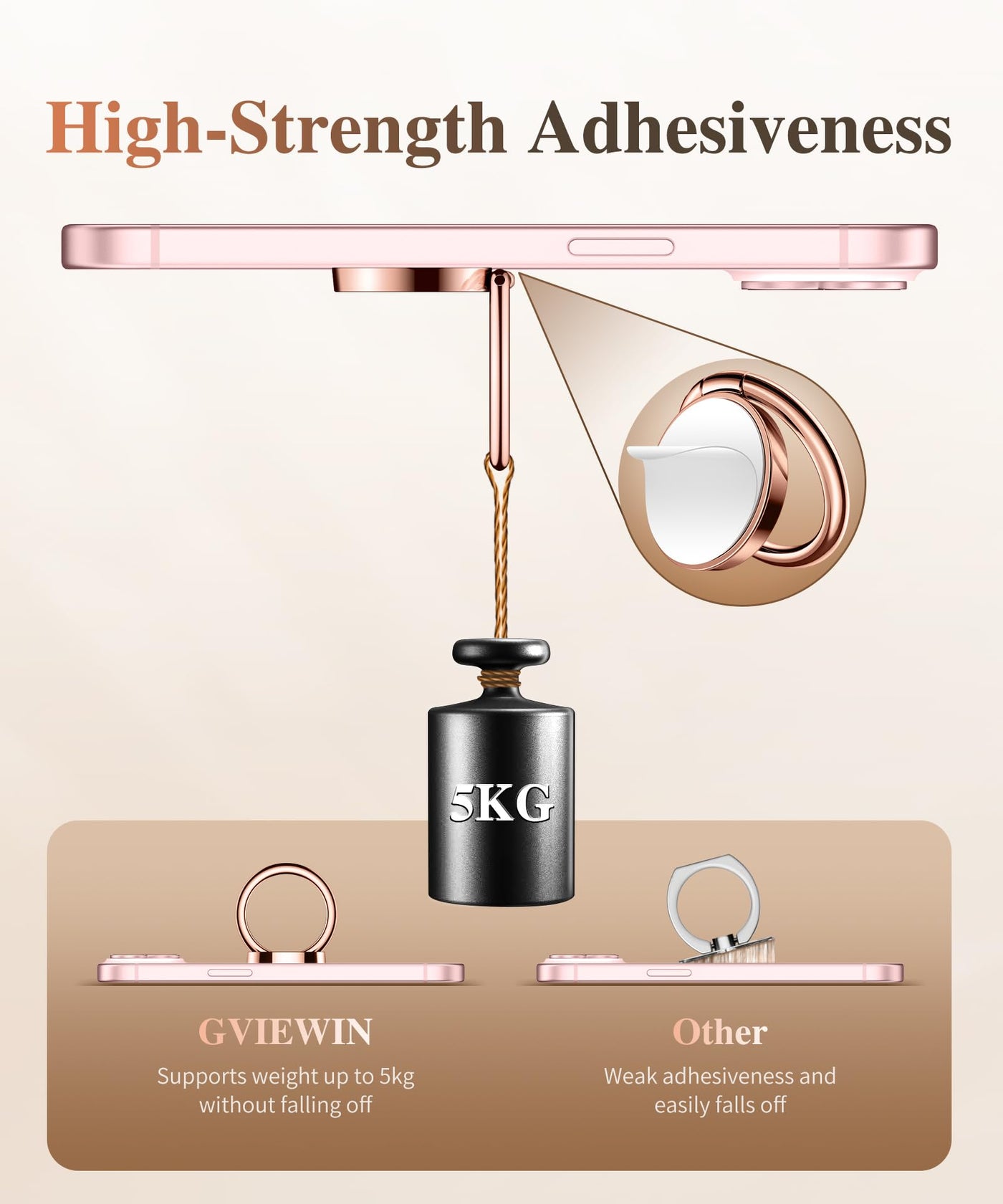 Q: Can I use the GVIEWIN phone ring holder on silicone or matte cases?A: No, the GVIEWIN Flower Cell Phone Ring Holder is not compatible with silicone material and matte surfaces due to its high-strength adhesive properties.