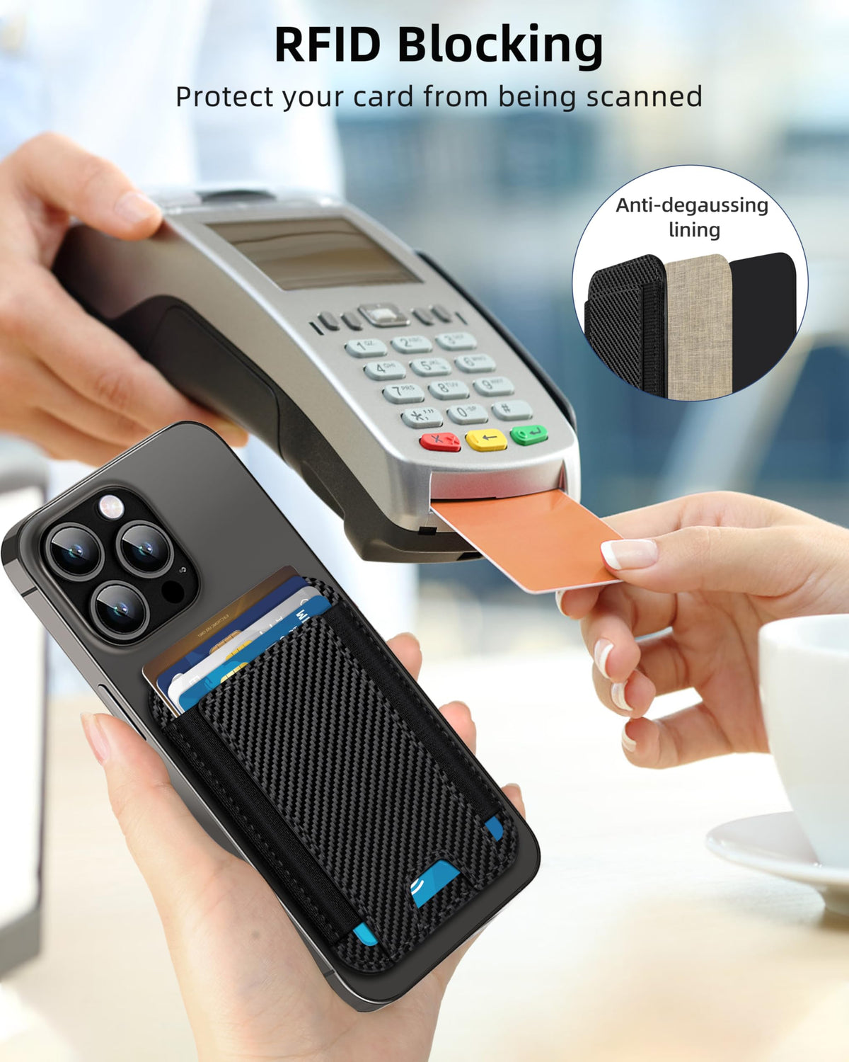 Q: Can the HiWe wallet block RFID signals?A: Yes, the HiWe for MagSafe wallet includes RFID/NFC blocking technology that protects your cards from unauthorized scanners. It effectively blocks signals from Driver Licenses, credit cards, debit cards, and ID cards to ensure your identity and assets remain safe.