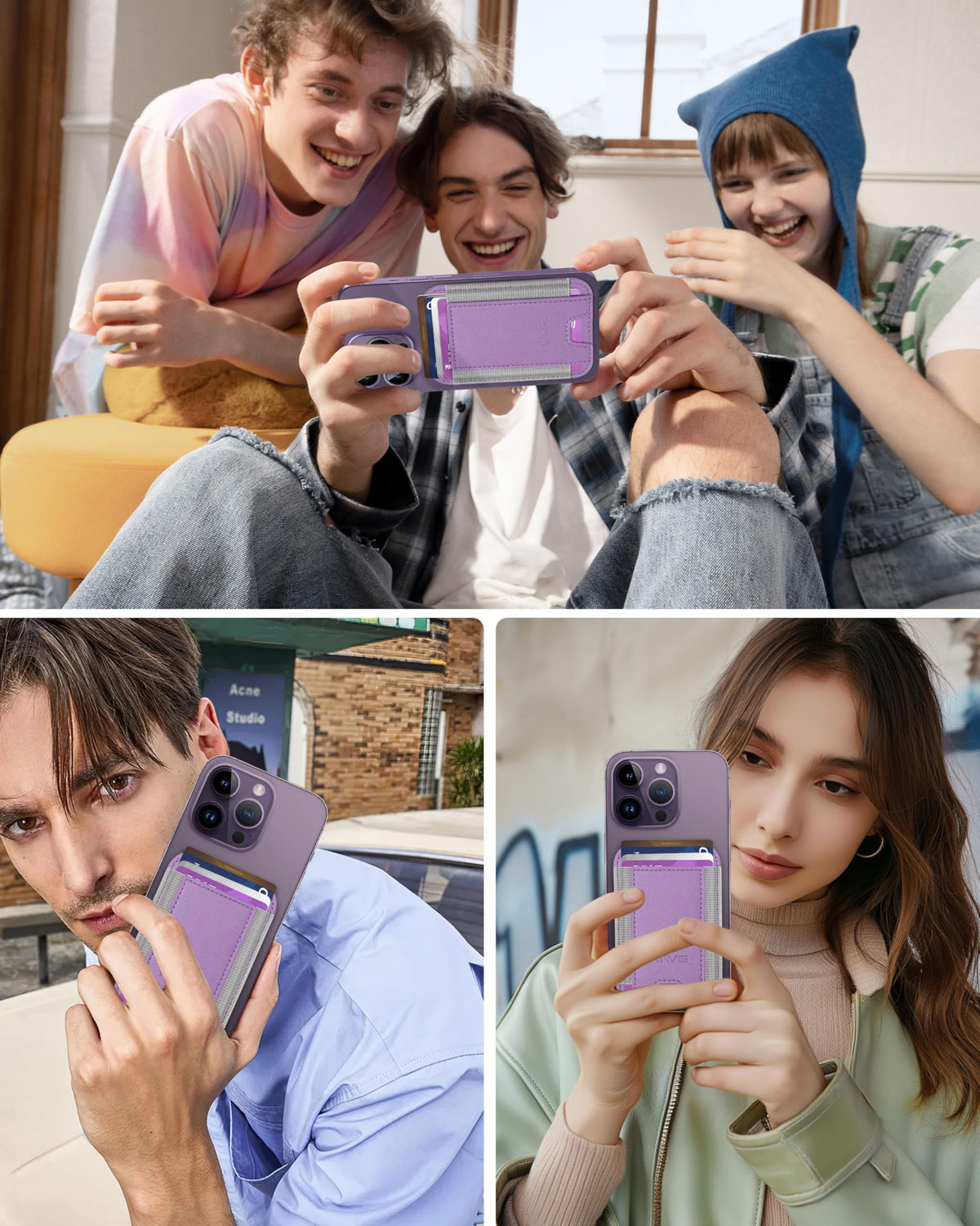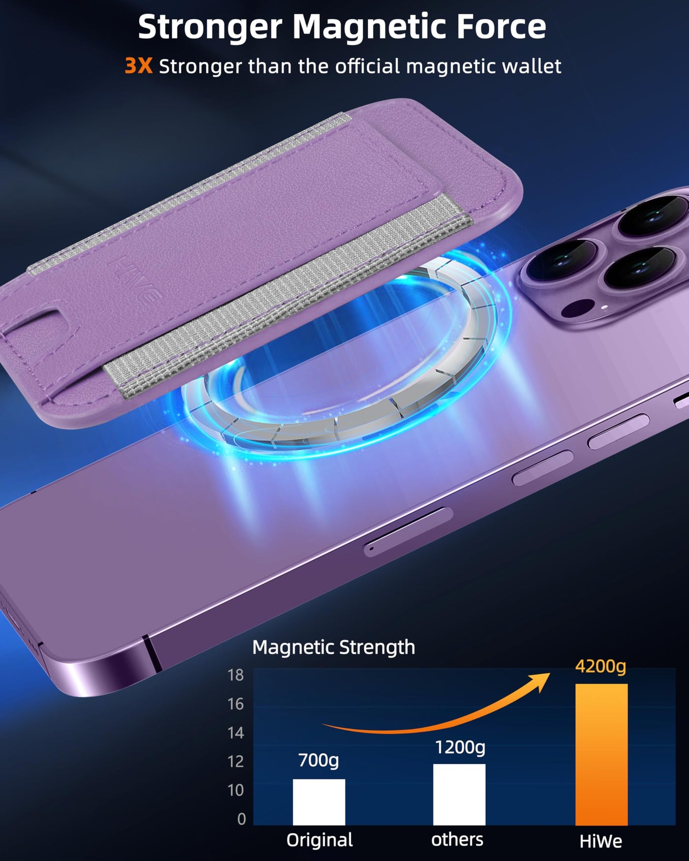 Q: How secure is the magnetic hold of the HiWe wallet?A: The HiWe wallet features a built-in magnet that is 3X stronger than the official magnetic wallets. It can hold up to 4200g of magnetic force, ensuring that your wallet stays firmly attached to your phone, while the stretchy elastic fabric band prevents cards from falling out.