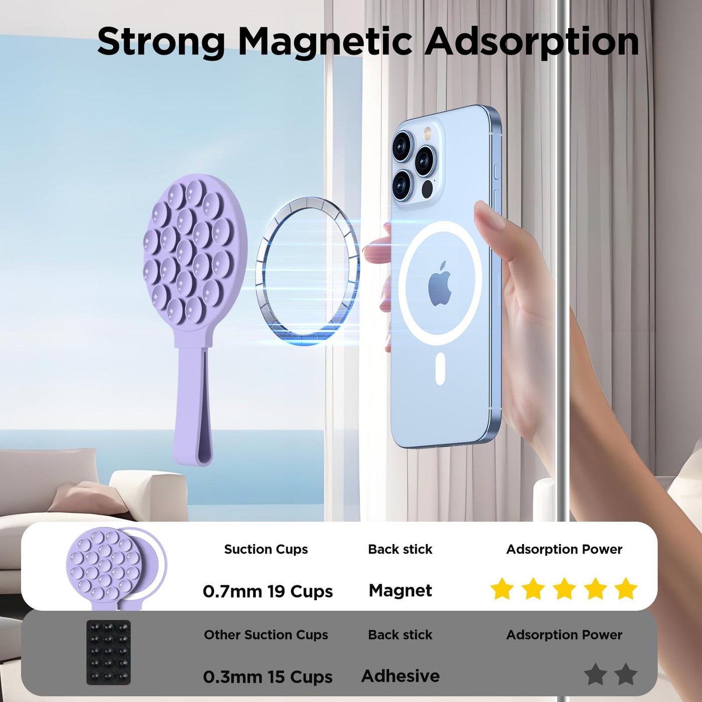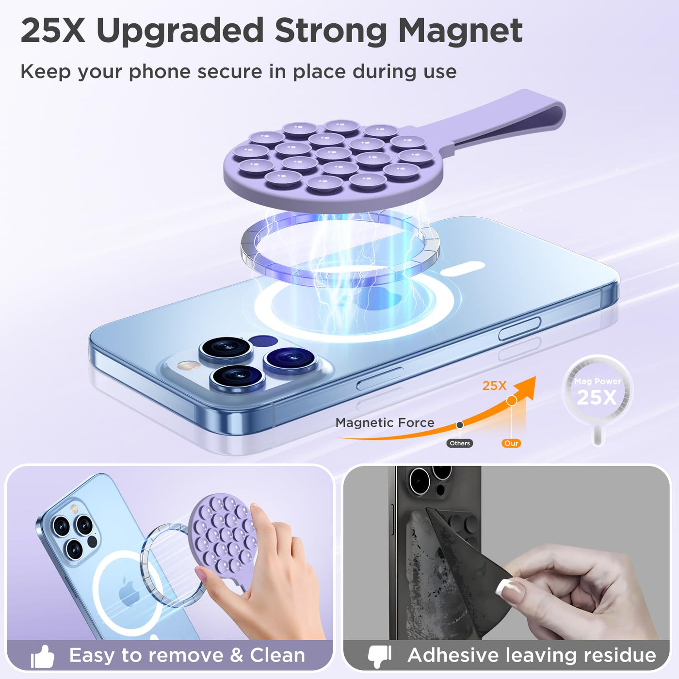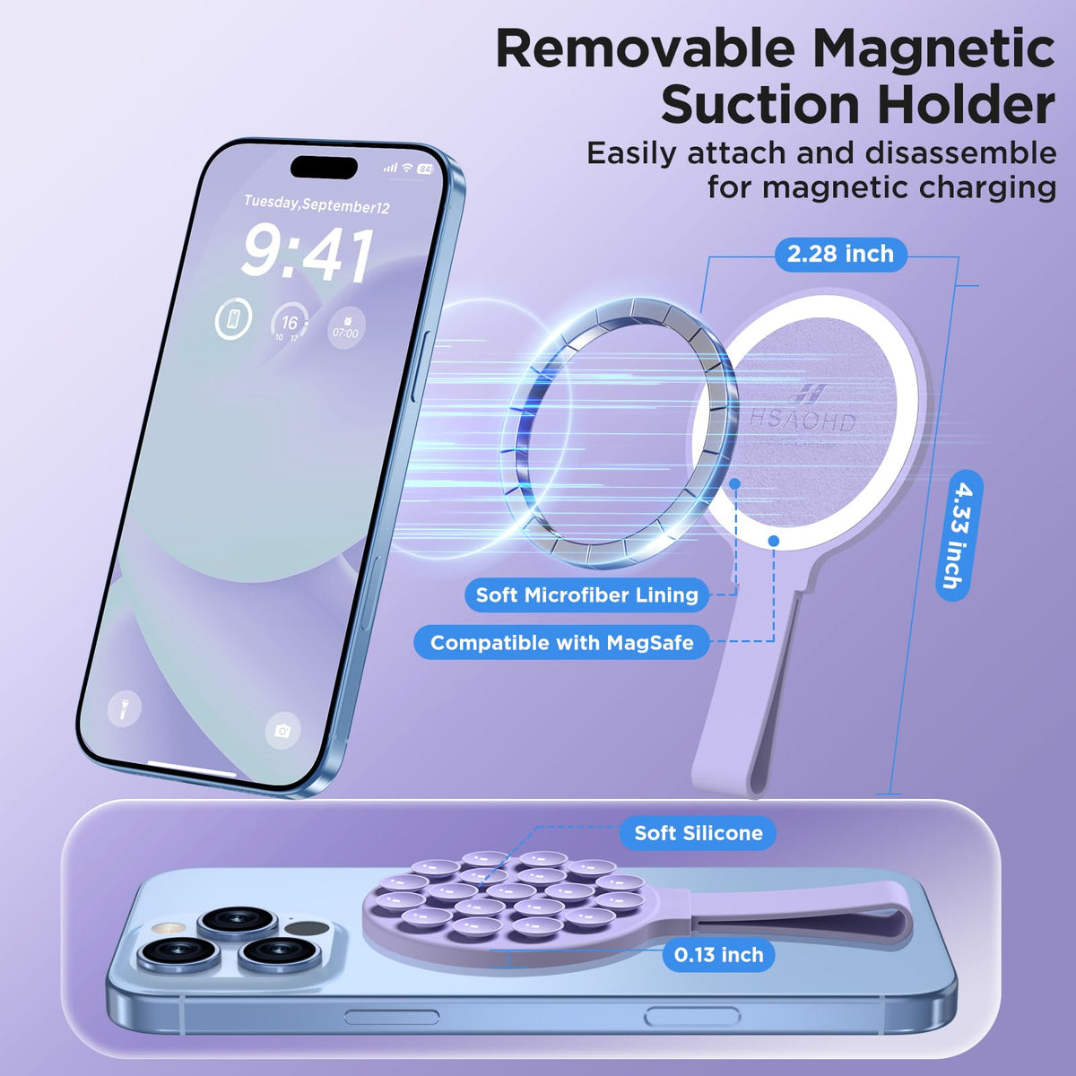 Hsaohd Magnetic Suction Cup Phone Mount For Magsafe Case, Silicone Octo Cup Buddy Phone Grip Holder, Hands-Free Mirror Shower St