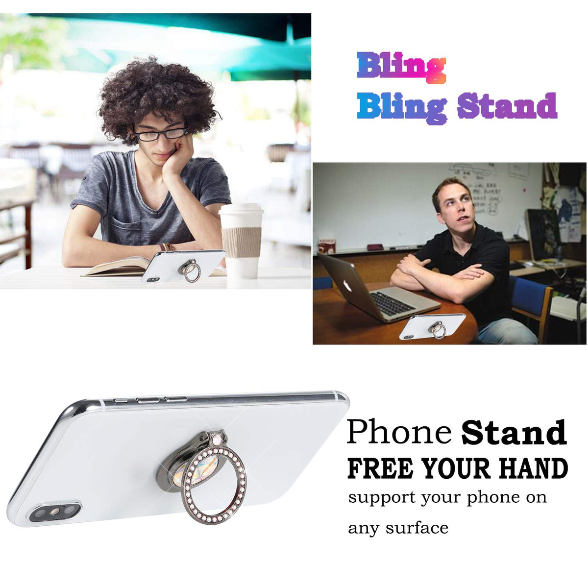 Aterial:Zinc Alloyusage Method:1 Wipe Away Dirt Dust On The Back Of Your Phones Or Tablets And Dry It Completely 2 Peel Off The Back Of Paperdont Touch The Adhesive Surface By Your Hands 3 Please Confirm The Perfect Place To Stick The Phone Ring As The Adhesive Is Not Reusable 4 Press The Pad Hard Against Your Phone Or Tablet For 30 Secondsplease Kindly Note That The Force Of The Adhesive Will Be Effective After 15 Min, Donat Use Or Pull Up Phone Ring After You Stick It On Your Phone 5 Apply It On Flat Suface The Adhesive Is Not Suitable For Textured Leathersilicon Phone Case Package Included:1 Black Bling Bling Diamond Ring