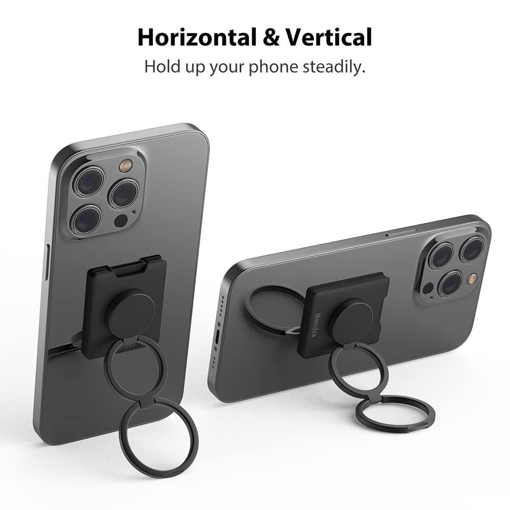 Monidea Phone Ring Holder, Phone Grip Finger Kickstand Wireless Charging Friendly, 360Rotation Metal Phone Ring Grip Stand Work
