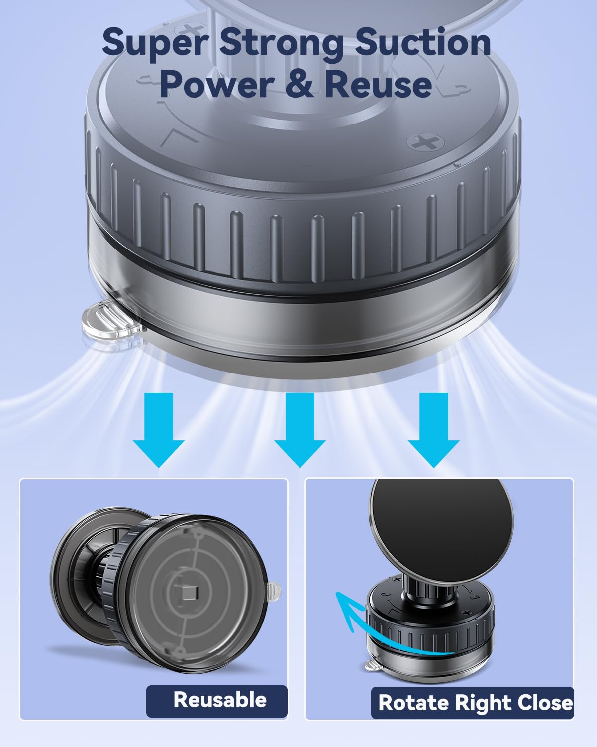 Nediea Vacuum Suction Cup Phone Mount, Hands-Free Magnetic Shower Cell Phone Holder, 720 Degree Adjustable Phone Suction Grip Stand For Mirror/Smooth Surface, Compatible With Magsafe Iphone 16/15/14/13/12/Android