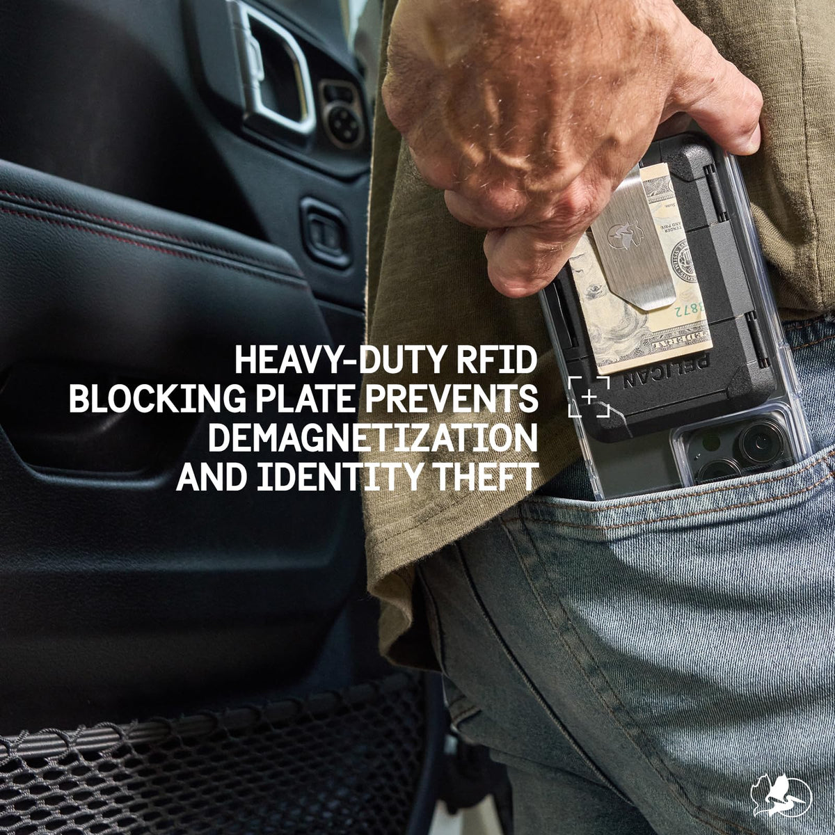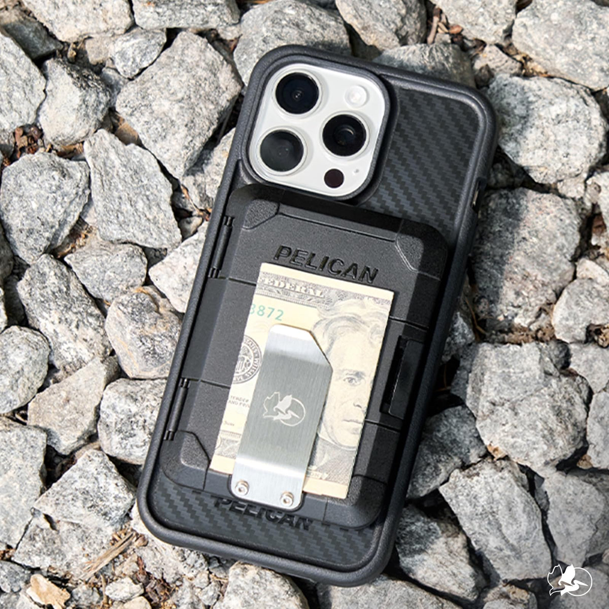 Built To Protect! The Pelican Protector Magnetic Money Clip Wallet Securely Holds Up To 5 Cards, Cash, And More. The Money Clip On The Exterior Of This Magnetic Card Holder For Iphone, Keeps Cash In Place, While The Rfid-Blocking Steel Plate Guards Against Identity Theft. With A Heavy-Duty Outer Shell, A Simple Latch That Keeps Everything Secure, Quick-Release Interior Ridges, Water Resistance, And Military-Grade Drop Protection, This Credit Card Wallet Is Perfect For All Your Adventures. Attach It Seamlessly To Your Magsafe-Compatible Case Or Iphone (Iphone 12 Series Or Later), Or Use It As A Standalone Wallet. Upgrade Your Wallet Game With This Versatile Accessory.Pelican Magnetic Wallet And Card Holder Features: Integrated Stainless Steel Money Clip Heavy Duty Steel Rfid Blocking Plate Carries Up To 5 Cards And Cash Strong Built-In Magnets Works With Magsafe Devices And Magnetic Phone Cases Military Grade Drop Protection Ipx4 Water Resistant Easy Card Access Comfortable Grip Premium Materials Latch Opens And Closes Easily With A Simple Snap One-Year Warrantywho Are We: At Pelican We Have Gained Prestige Among Our Buyers By Protecting What Matters The Most And We Are Now A Leading Supplier Of Rugged Cases. We Always Strive To Create Products With The Latest Tech, Premium Materials, And Extreme Standards.We Have A Collection Of Defensive Cases, Waterproof Cases, And Screen Protectors For Recent Flagships Like The Iphone 16 Pro Max, Iphone 16 Pro, Iphone 16 Plus, Iphone 16, S24 Series, Pixel 9 Pro Fold, Ipad, Airpods, And More.