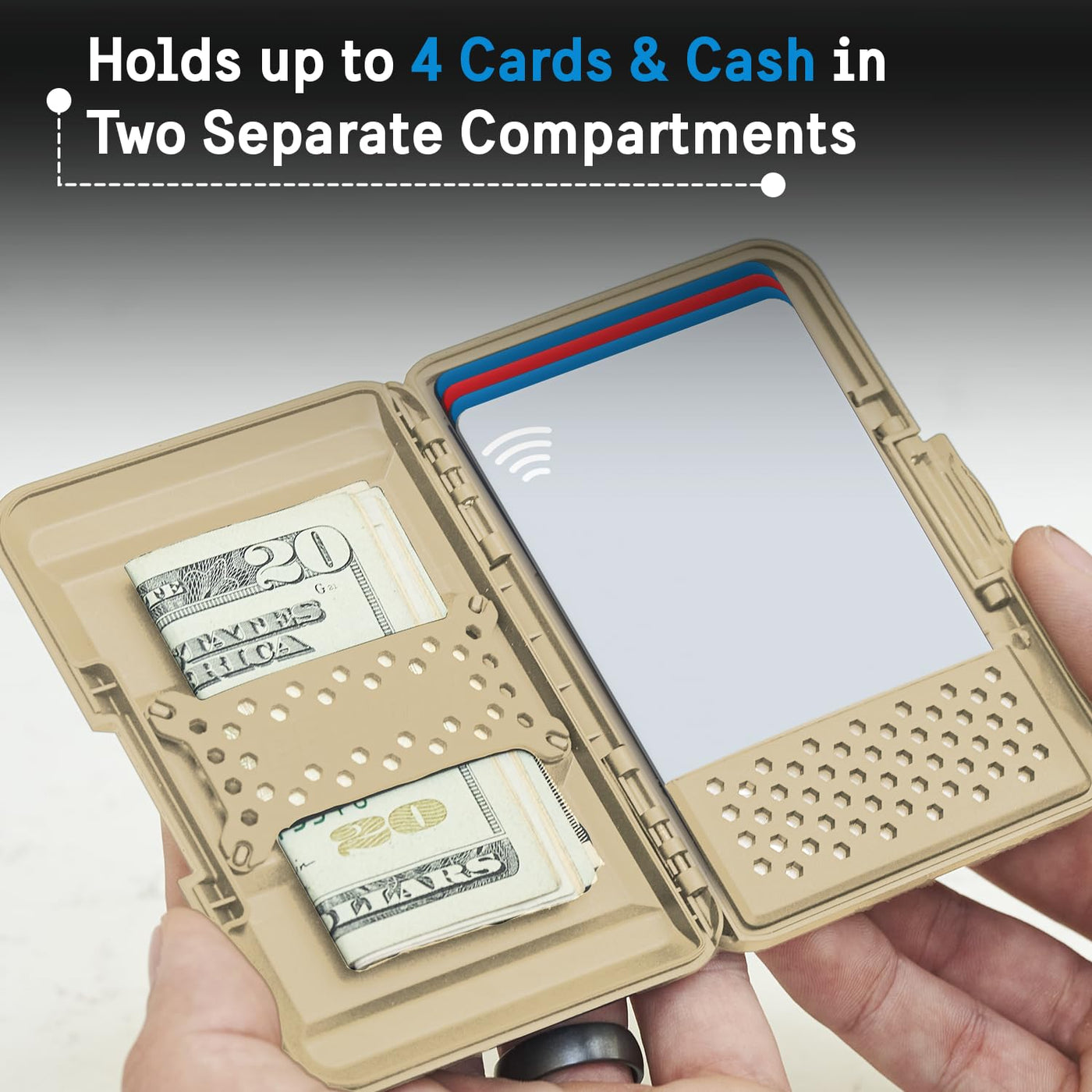 Q: How many cards can the Pelican MagSafe Wallet hold?A: The wallet features two separate compartments and can securely hold up to 4 cards along with cash.