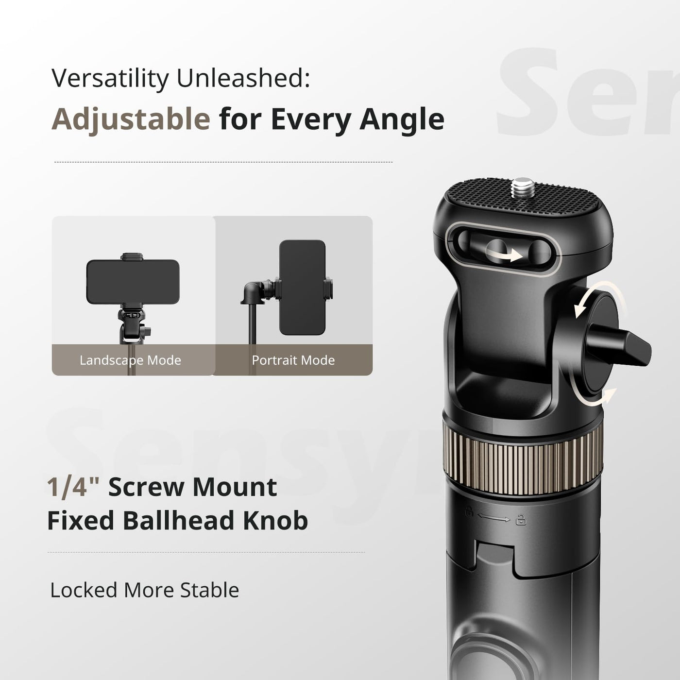 Q: How tall does the Sensyne tripod extend?A: The Sensyne tripod can extend up to an impressive 72 inches, allowing you to capture photos and videos from new heights and angles for enhanced creativity in your photography.