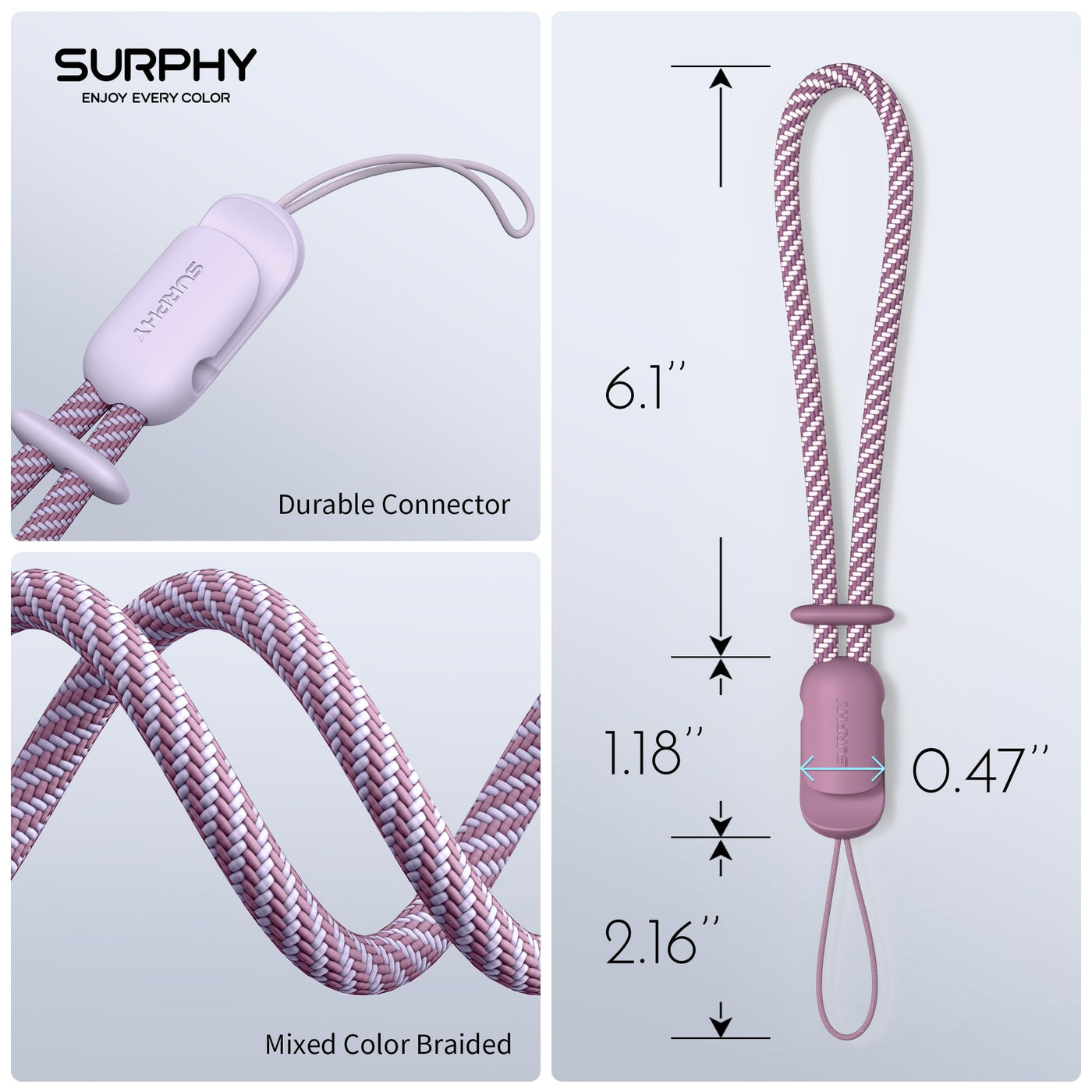 Q: What materials are used in the SURPHY phone lanyard?A: The SURPHY phone lanyard is made from premium nylon, which provides durability and comfort. This material ensures that the lanyard is lightweight and comfortable to wear for extended periods without irritating your skin.