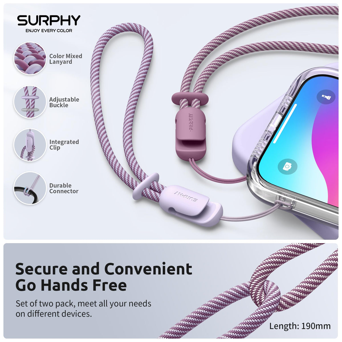 Surphy 2 Pack Lanyard, Phone Strap, Adjustable Phone Lanyard With Two Color Braided, Wrist Strap For Airpods, Camera (Lilac & Li