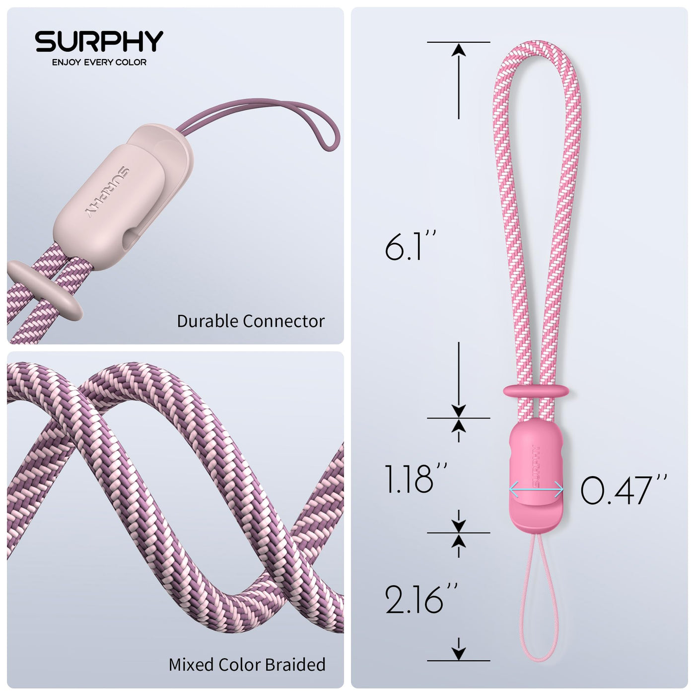 Q: What materials are used in the SURPHY phone lanyard?A: The SURPHY phone lanyard is made from premium nylon material, ensuring durability and comfort when worn on your wrist.