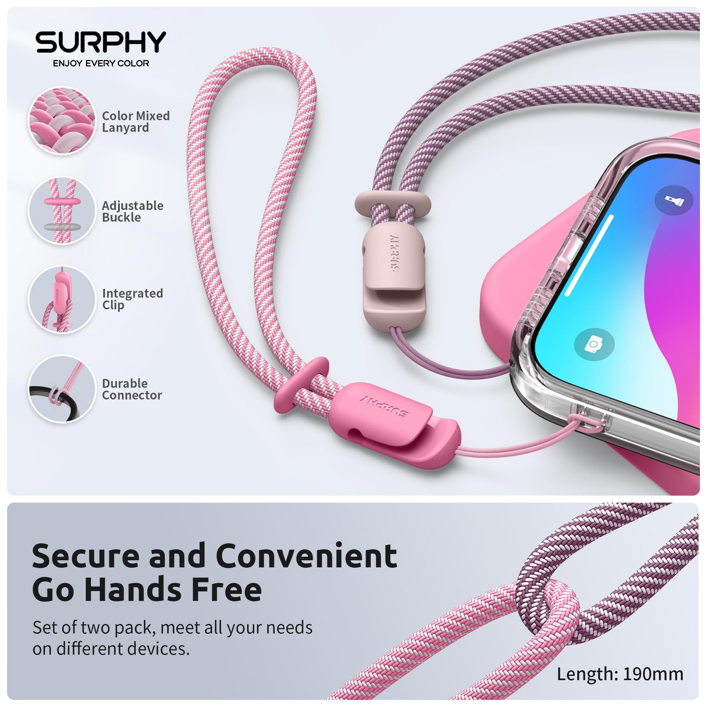 Surphy 2 Pack Lanyard, Phone Strap, Adjustable Phone Lanyard With Two Color Braided, Wrist Strap For Airpods, Camera (Pink & Ros
