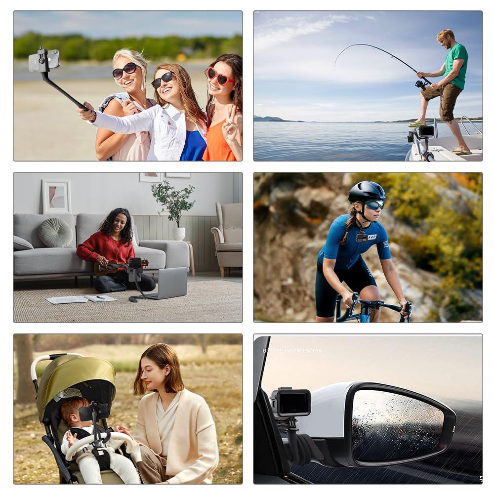 Taisioner Flex Mount Stroller Phone Holder Selfie Stick Gooseneck Mount For Treadmill Bike Shopping Cart Boat Smartphone And Action Camera Suitable With Gopro Hero 12/11/10/9/8/7/6/5/4 Akaso Insta360