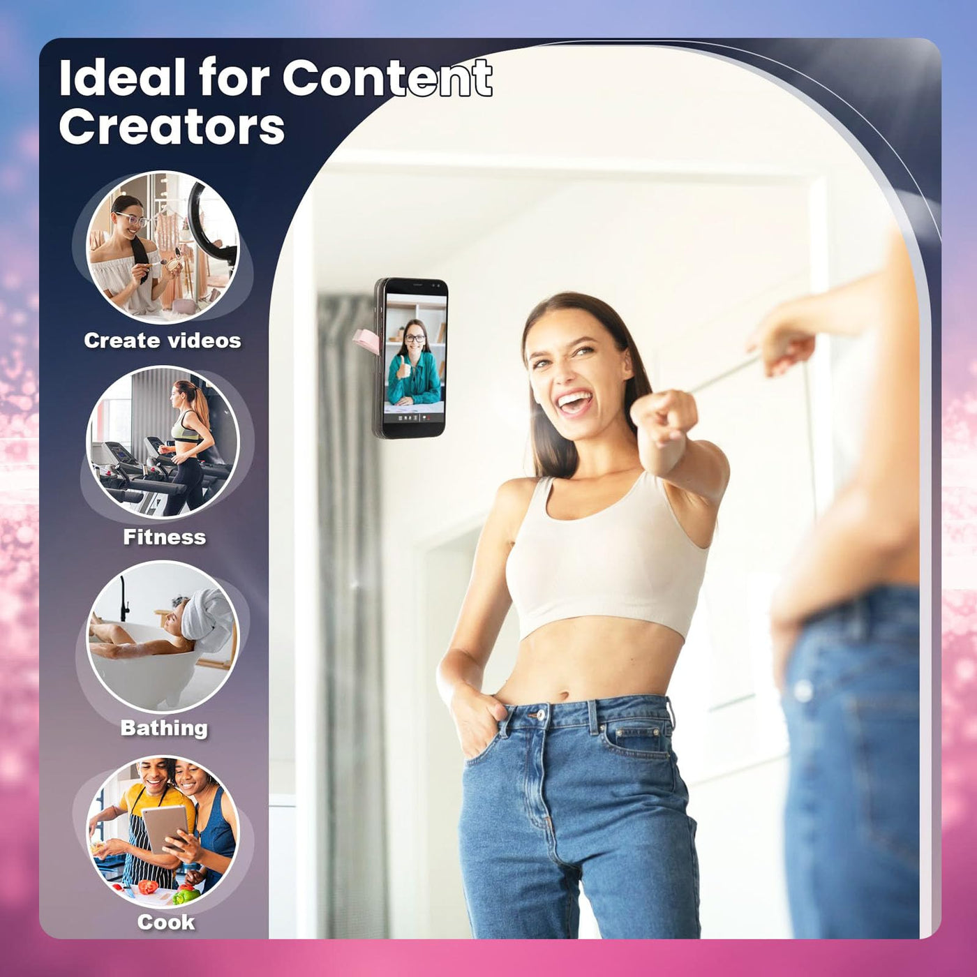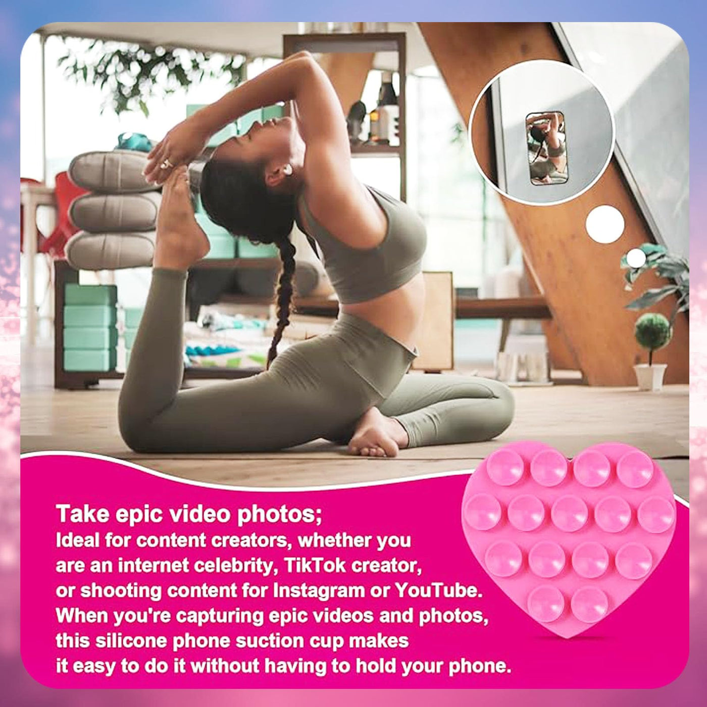 Built To Withstand Your Adventurous, On-The-Go Lifestyle, This Mount'S Detachability Makes It Ideal For Every Content Creation Situation, From Gym Sessions To Outdoor Adventures With Double-Sided Suction Cups, This Mount Provides A Firm, Reliable Hold To Keep Your Phone In Place During Dynamic Content Creation This Mount Helps You Capture Epic, Professional-Quality Video And Photos For Tiktok, Instagram, And More