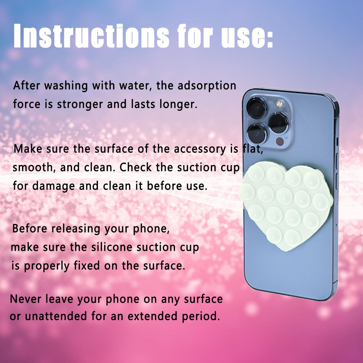 Vilbocr 3Pcs Silicone Suction Phone Case Mount,Double-Sided Heart Shaped Non Slip Suction Cup Phone Mount,Hands-Free Phone Acces