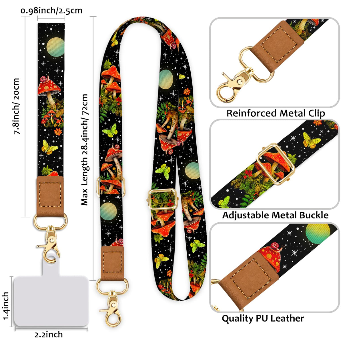 Yonlevres Cell Phone Lanyard Crossbody With Wrist Strap, Mushroom Butterfly Phone Lanyards For Around The Neck Wristlet Adjustab
