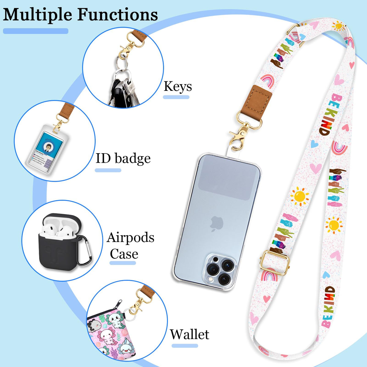Yonlevres Phone Lanyard Crossbody With Wrist Strap, Be Kind Cell Phone Lanyards For Around The Neck Wristlet Adjustable Phone Strap, Cute Lanyard For Keys Case Id Badges Phone Accessories
