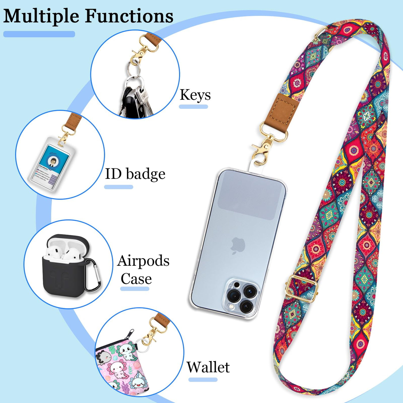 Yonlevres Phone Lanyard Crossbody Wrist Strap, Boho Bohemian Cell Phone Lanyards For Around The Neck Wristlet Adjustable Phone Strap, Iphone Lanyard For Women Keys Case Id Badges Phone Accessories