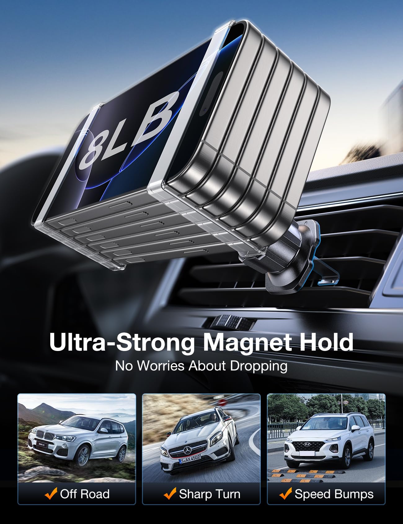 Akesepe For Magsafe Car Mount [2025 Strongest Magnet Power] Magnetic Phone Holder For Car Vent 360 Rotation Magnetic Car Phone H