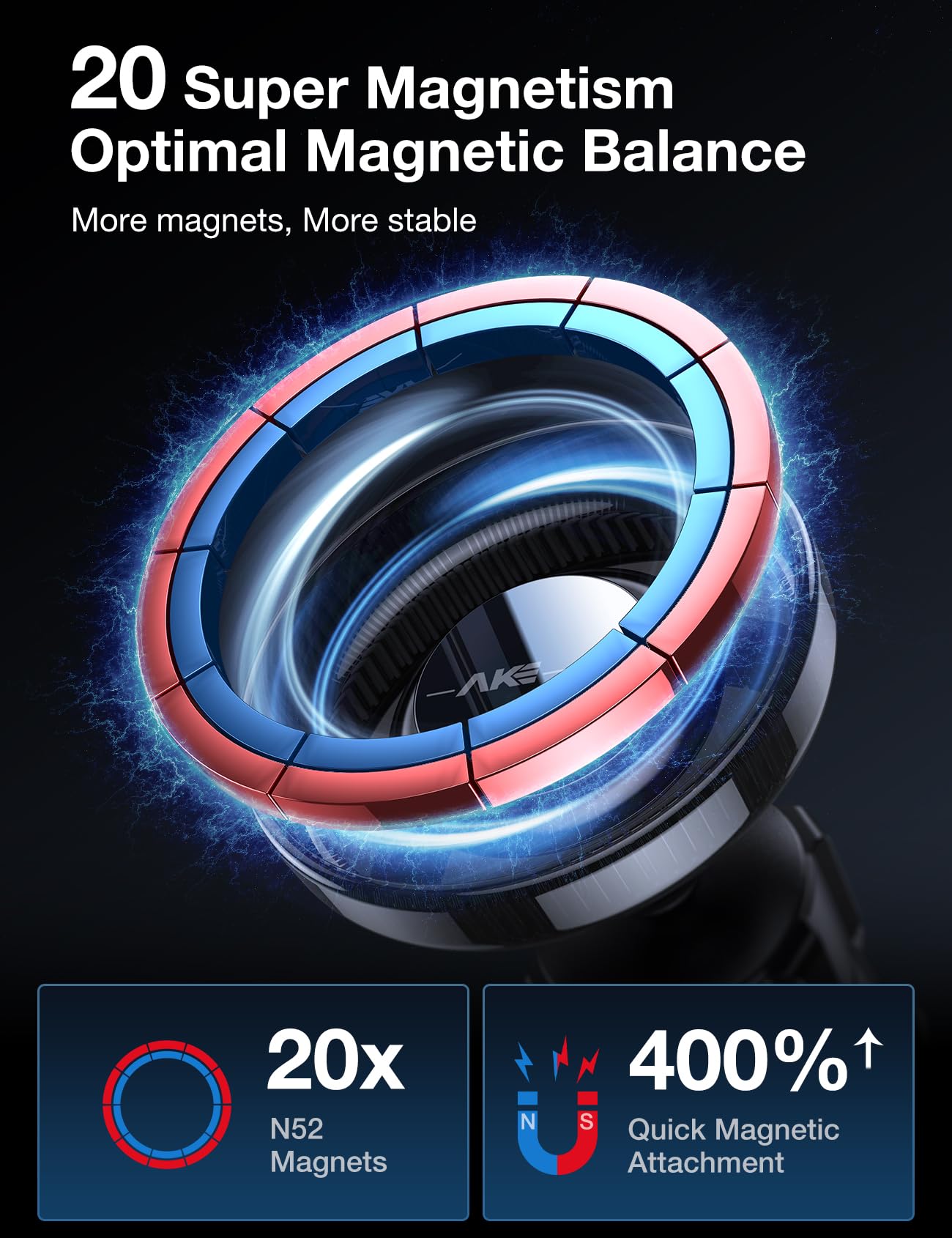 [Strongest Magnetism & Secure Grip] - Ake For Magsafe Car Mount, Equipped With Top-Tier N52 Permanent Magnets And 20 Wider Rb Magnets, Ensures Your Phone Stays Firmly In Place, Even On Bumpy Roads. The Closed Magnetic Field Won