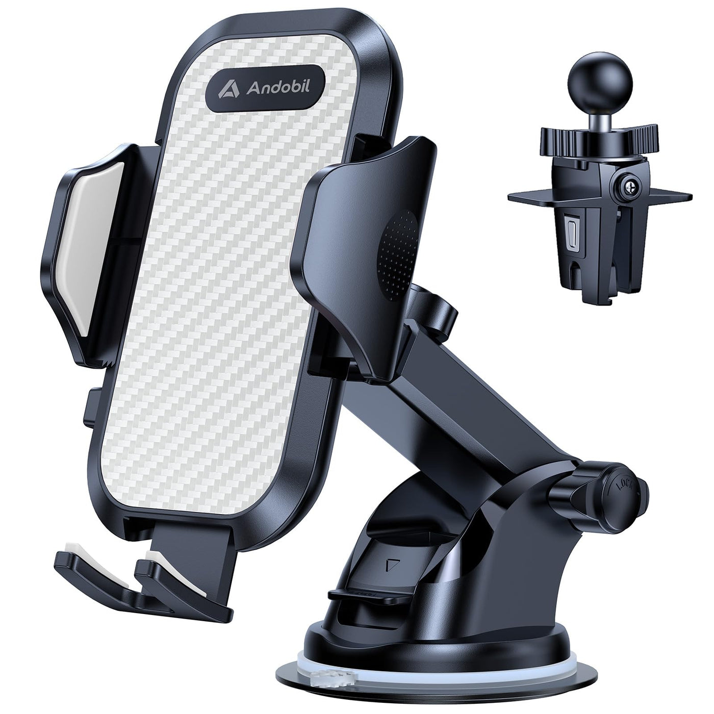 Andobil Newest Car Phone Holder Mount (Bumpy Roads Friendly) Military Grade Phone Holders For Your Car Dashboard Windshield Air