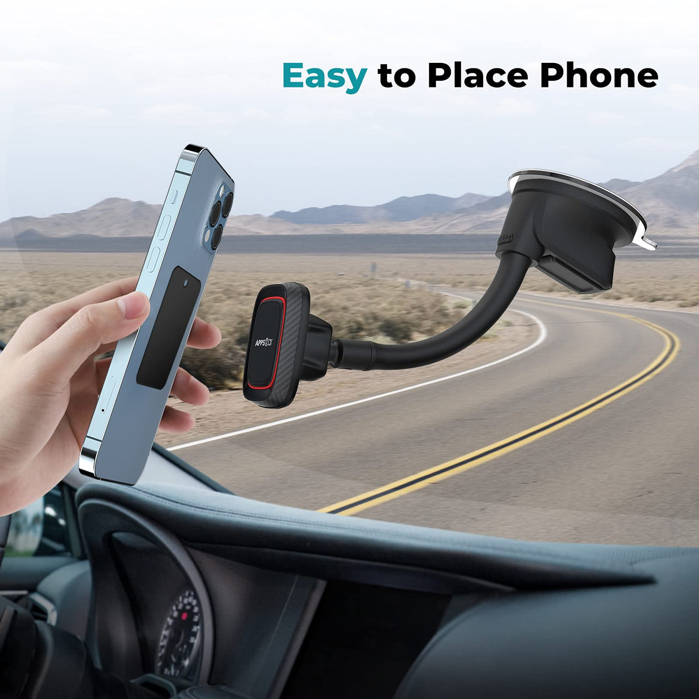 Apps2Car Magnetic Phone Holder For Car, Dashboard Windshield Phone Holder Mount With Flexible Arm & Built In Strong Magnets, Suction Cup Phone Holder For Car Compatible With All Smartphones
