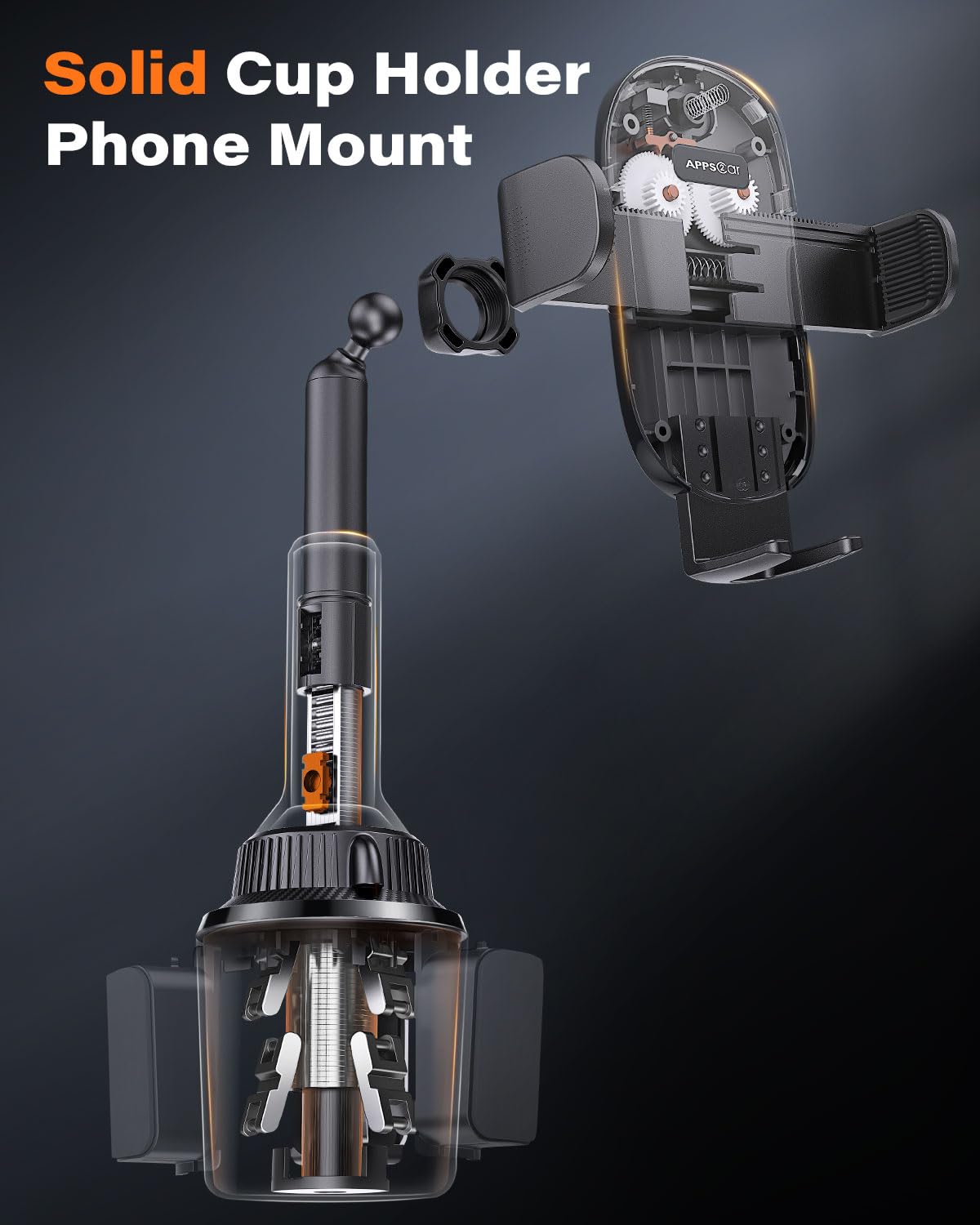 Apps2Car Universal Car Cup Phone Holder | Quick Extension Long Arm | 360 Swivel | Adjustable For Iphone, Samsung, Google, And Al
