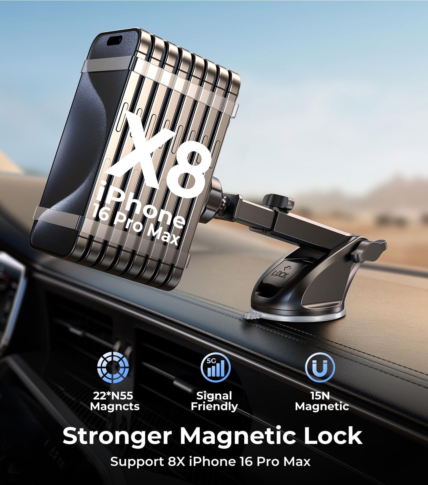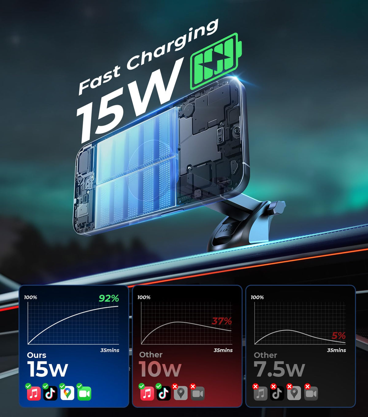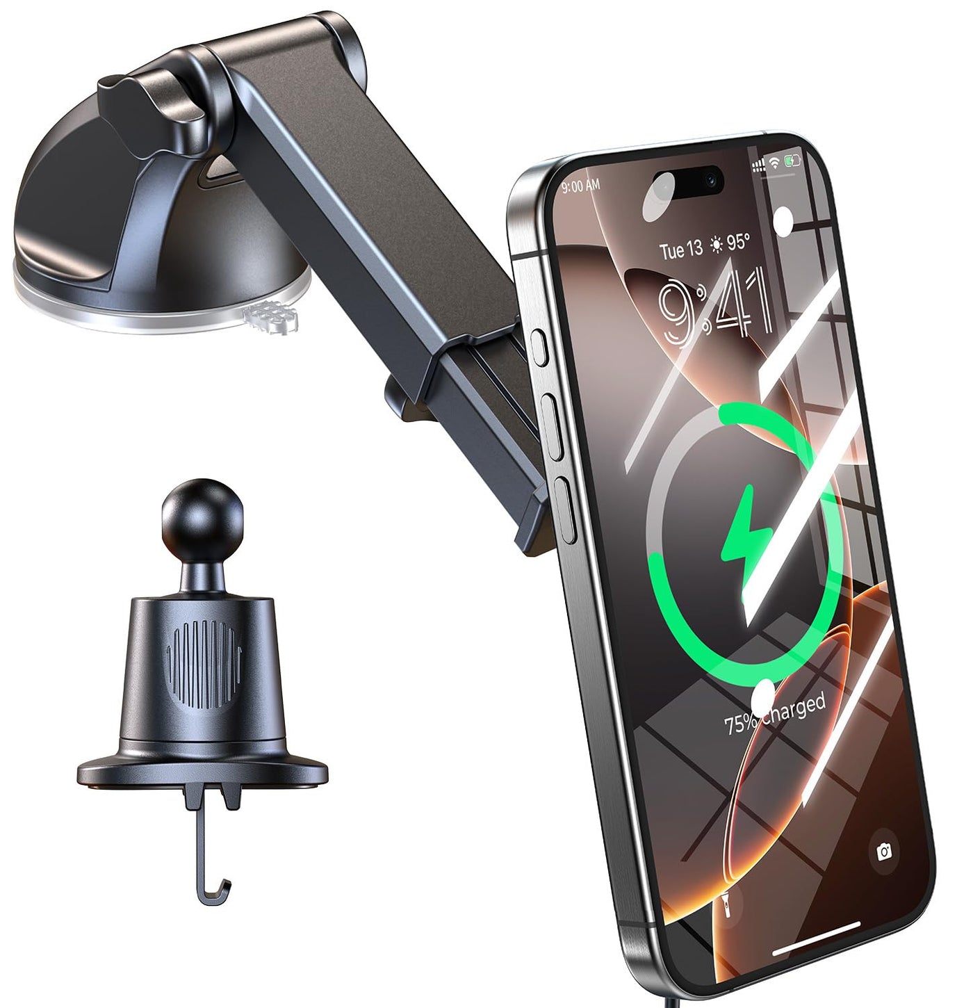 Aredan New 2025 Vacuum Magnetic Phone Suction Holder, 15W Wireless Charger For Magsafe Car Mount & Dashboard Windshield Vent Hol
