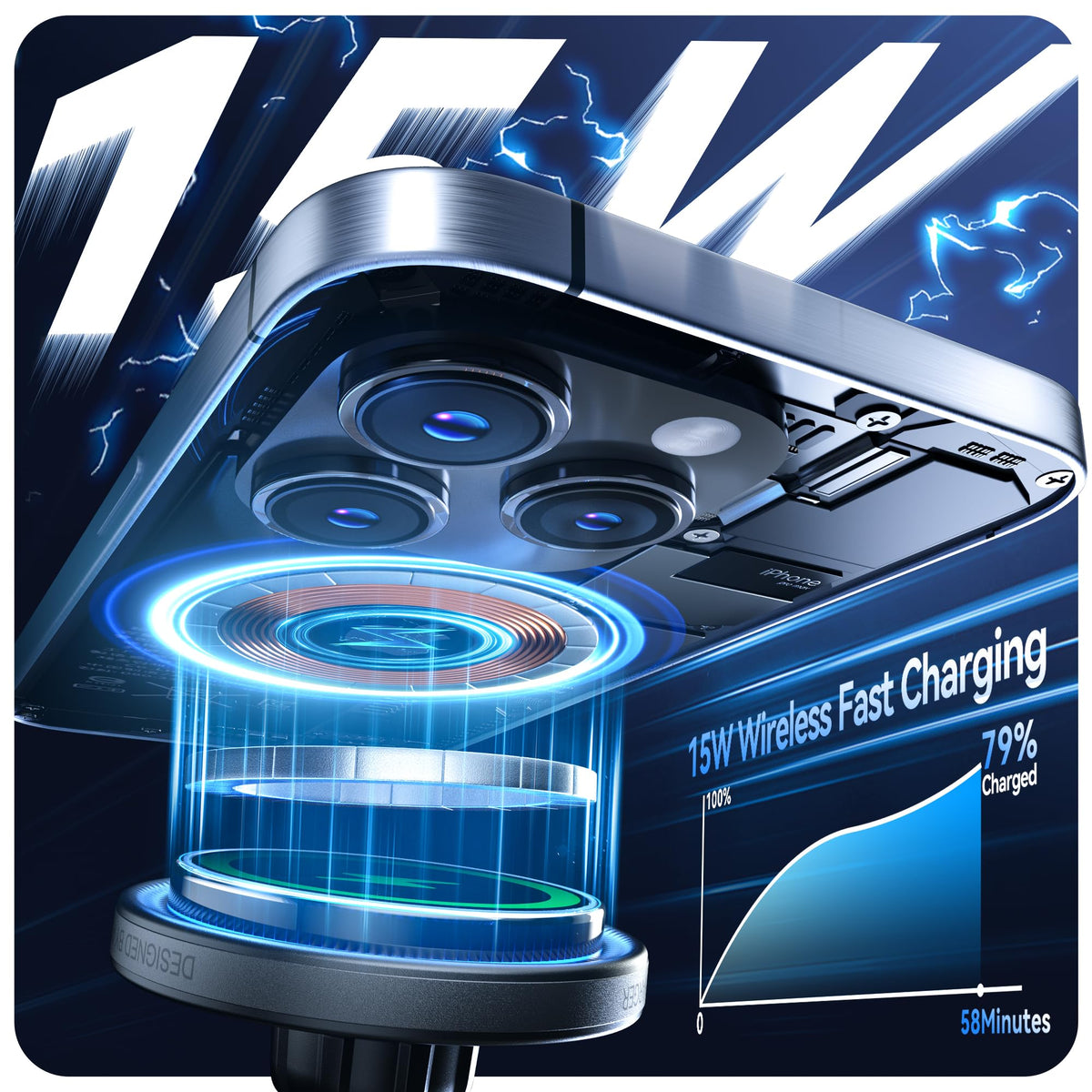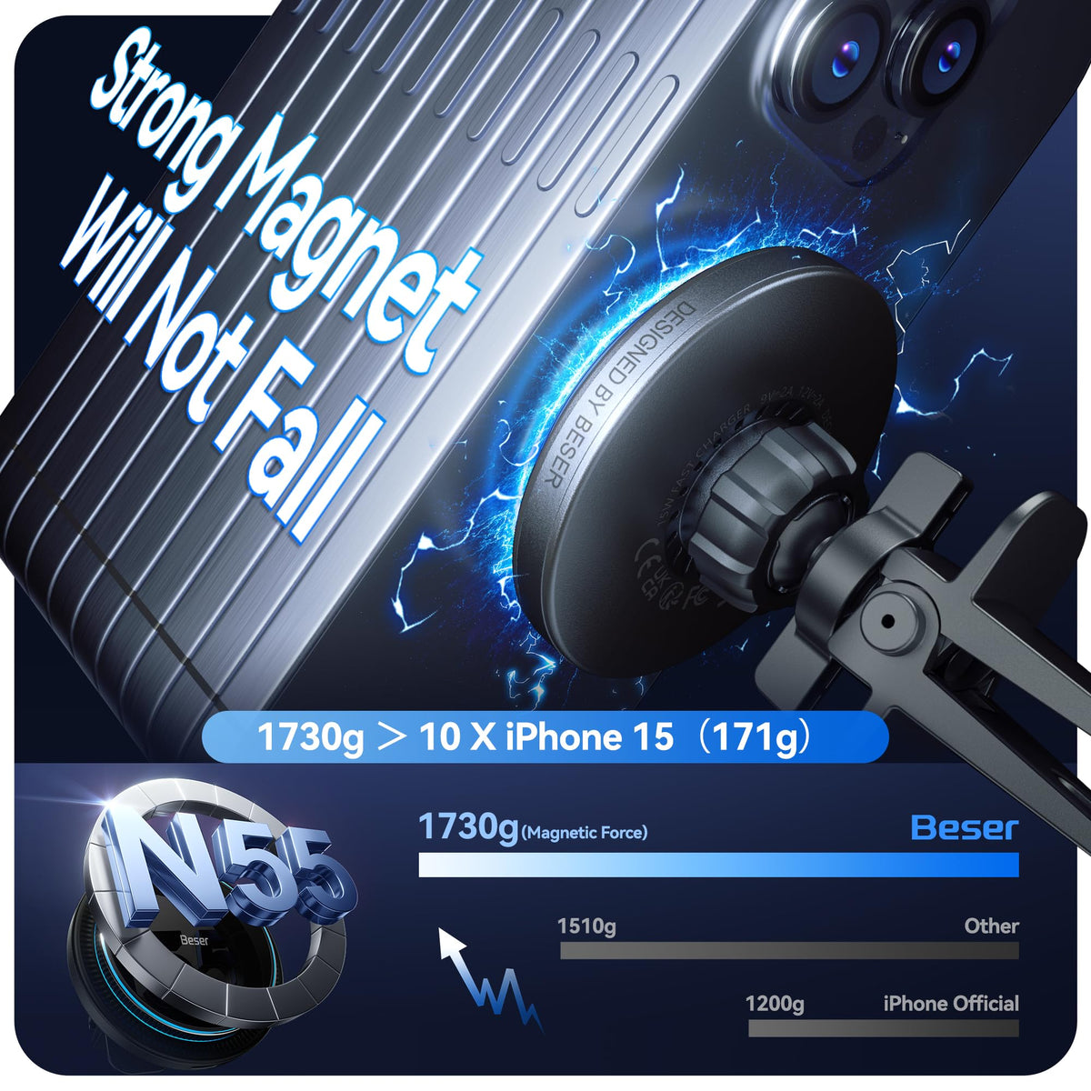 Beser 15W For Magsafe Car Mount Charger, (3.81 Lbf) Magnetic Qi Wireless Car Charger, Vent/Dashboard, Phone Holder Mount For Iph