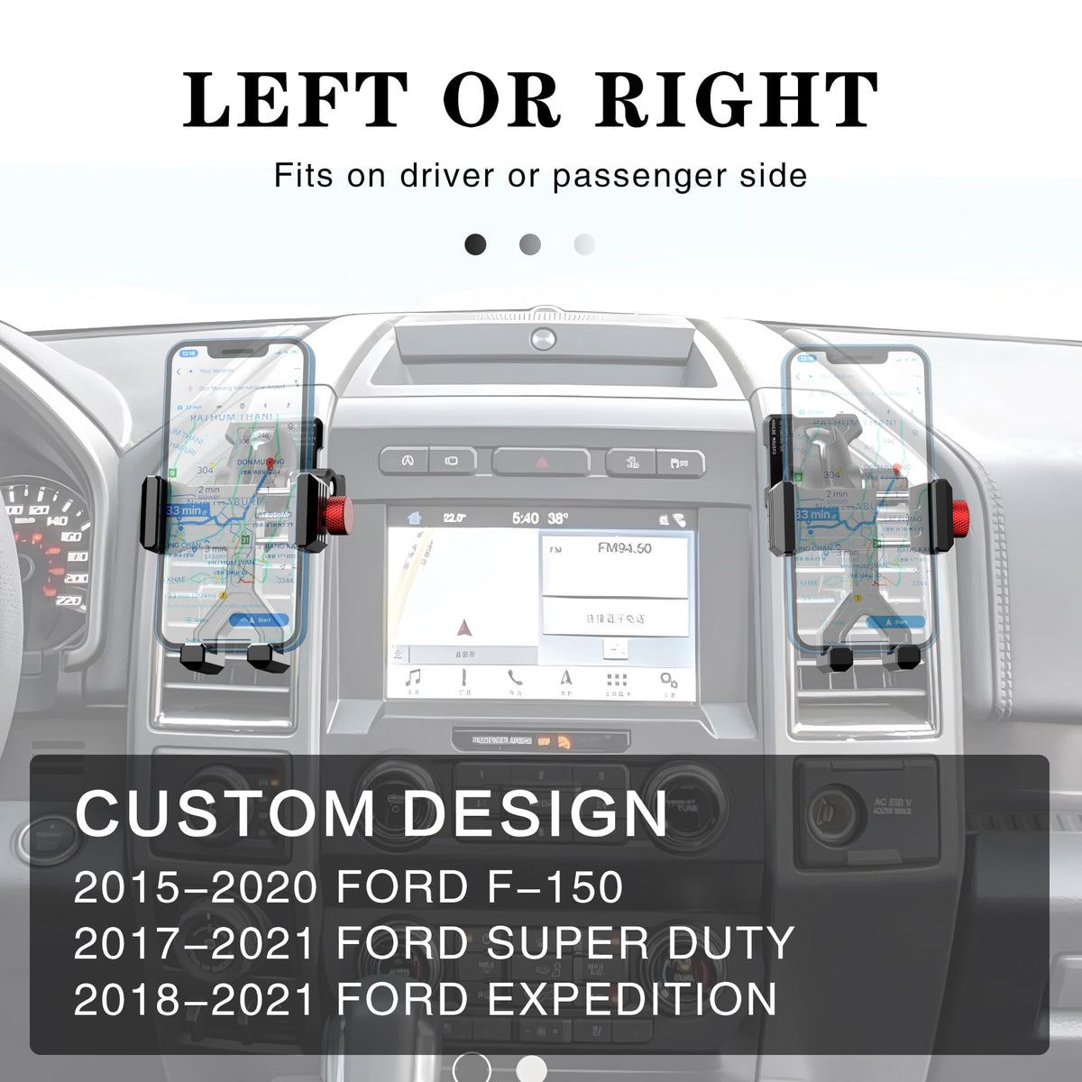 The Ford Vent Phone Holder Is The Perfect Addition To Any Ford F-150 Owner'S Arsenal. Designed Specifically For Ford F-150 2015-2020, Expedition 2018-2021, And Super Duty 2017-2021, This Phone Mount Promises A Seamless Integration To The Sleek Design Of Your Vehicle. Crafted With High-Quality Aluminum Materials, This Phone Holder Boasts Exceptional Durability And Longevity. Not To Mention Its 360-Degree Rotation Feature That Gives You The Most Versatile Viewing Angle Possible. Say Goodbye To Awkwardly Fumbling With Your Phone Or Dangerously Taking Your Hands Off The Wheel While Driving. Installation Is A Breeze - Just Install The Ford Vent Phone Holder Onto Your Vent, And Voila, You'Re Ready To Go! Whether It'S For Navigation, Hands-Free Calling, Or Simply For Entertainment Purposes, This Mount Will Keep Your Phone Safe And Secure, Leaving You Free To Focus On The Road Ahead. The Ultimate Accessory For Any Ford Truck Owner.