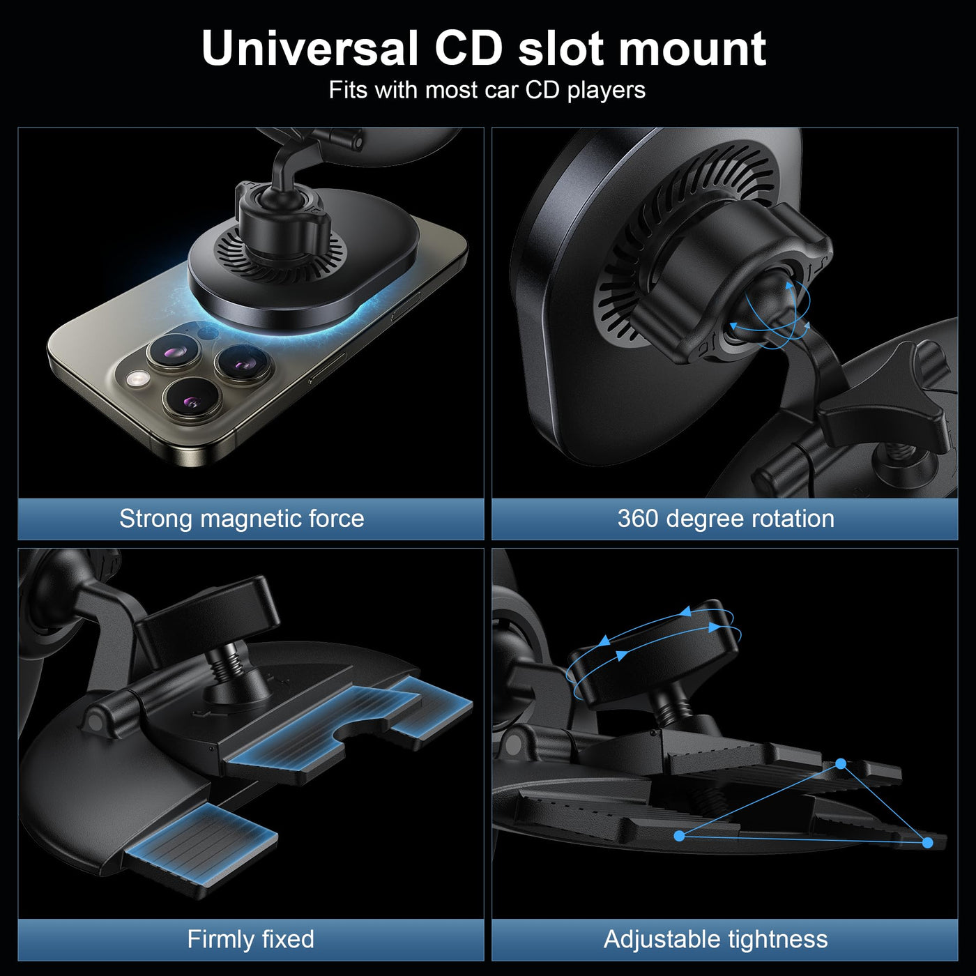 For Qi2 15W Wireless Magsafe Cd Car Mount Charger,Cd Player Phone Mounts, Cd Slot Phone Mount Holder For Iphone 16/15/14/13/12,